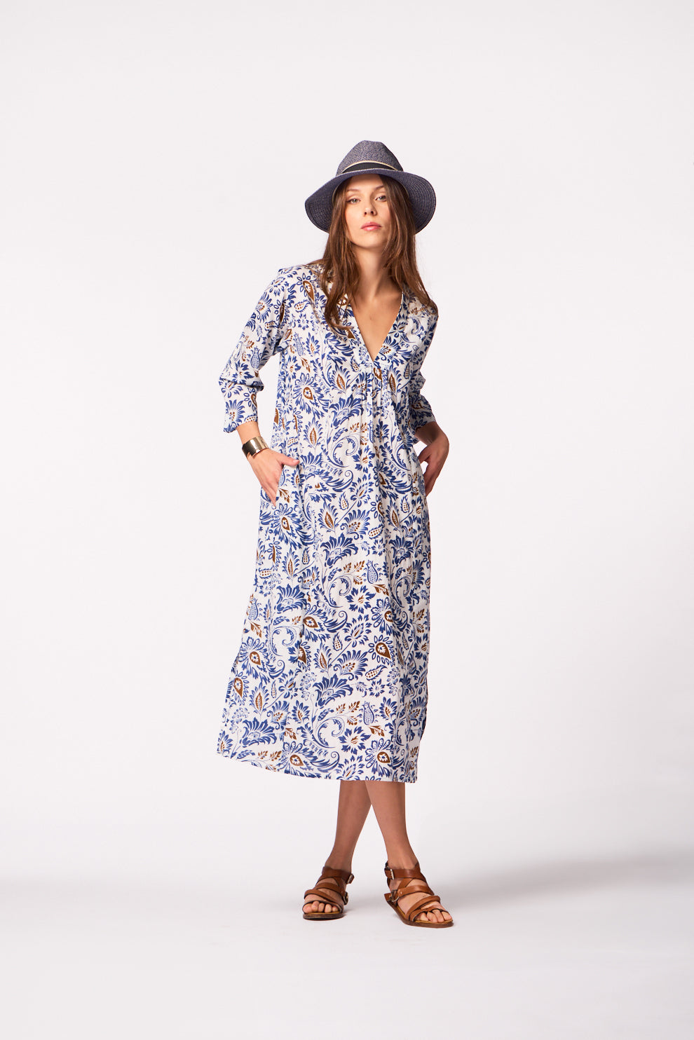• Long kaftan with a flowing silhouette for a feminine, elegant look