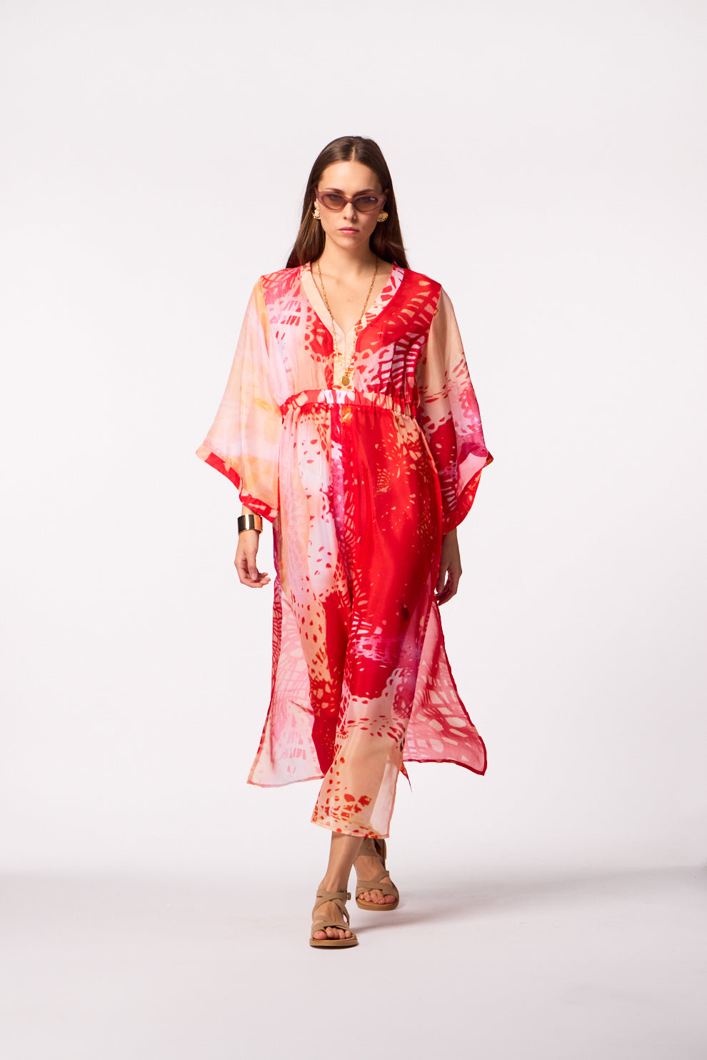 • Maxi kaftan with a bold pattern for a striking, chic silhouette
