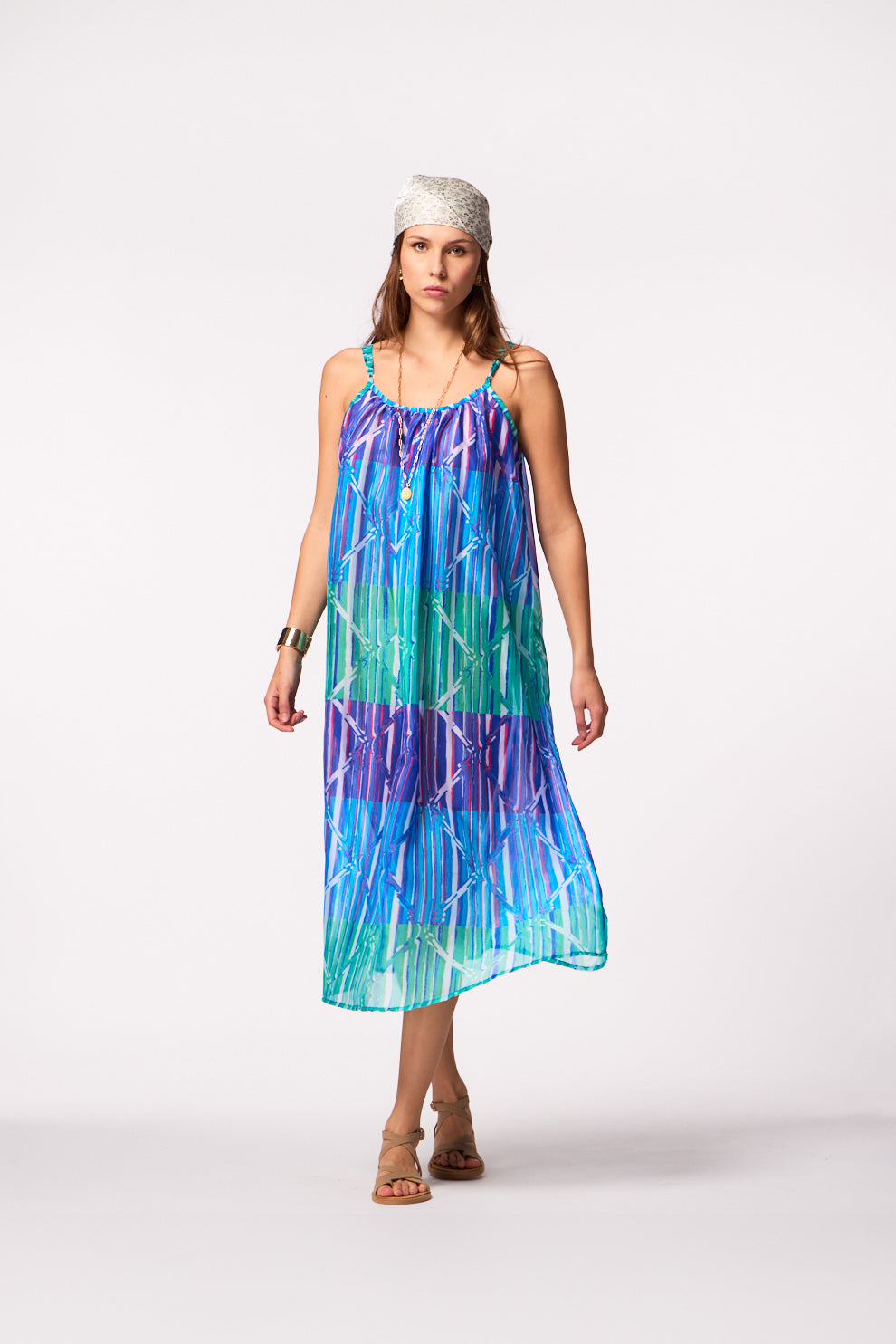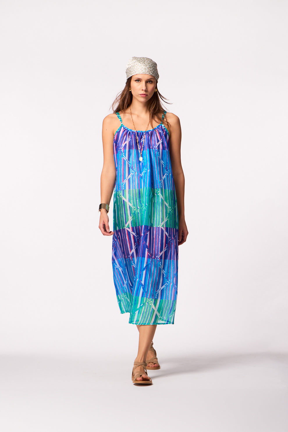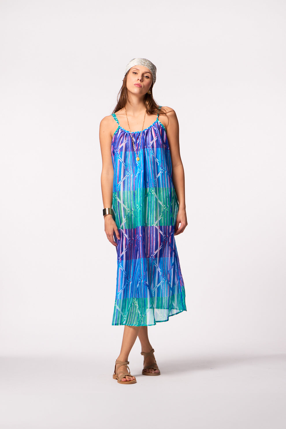 • Long dress with delicate shoulder straps for a light, airy silhouette