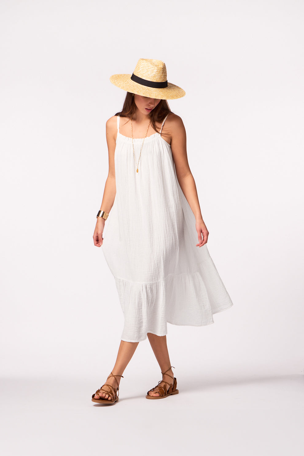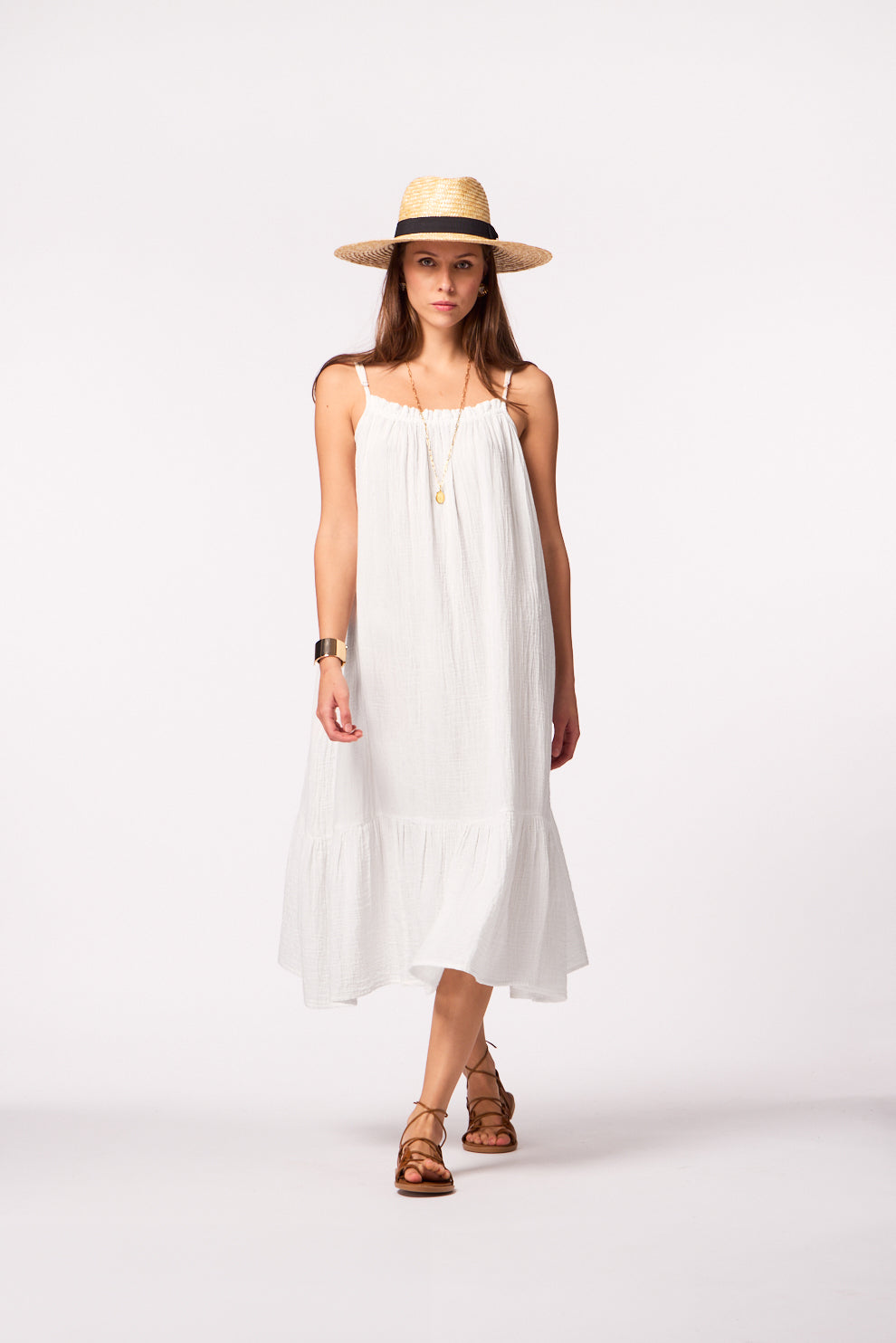 • Midi dress with delicate straps and a charming chest tie for a flirty, feminine vibe