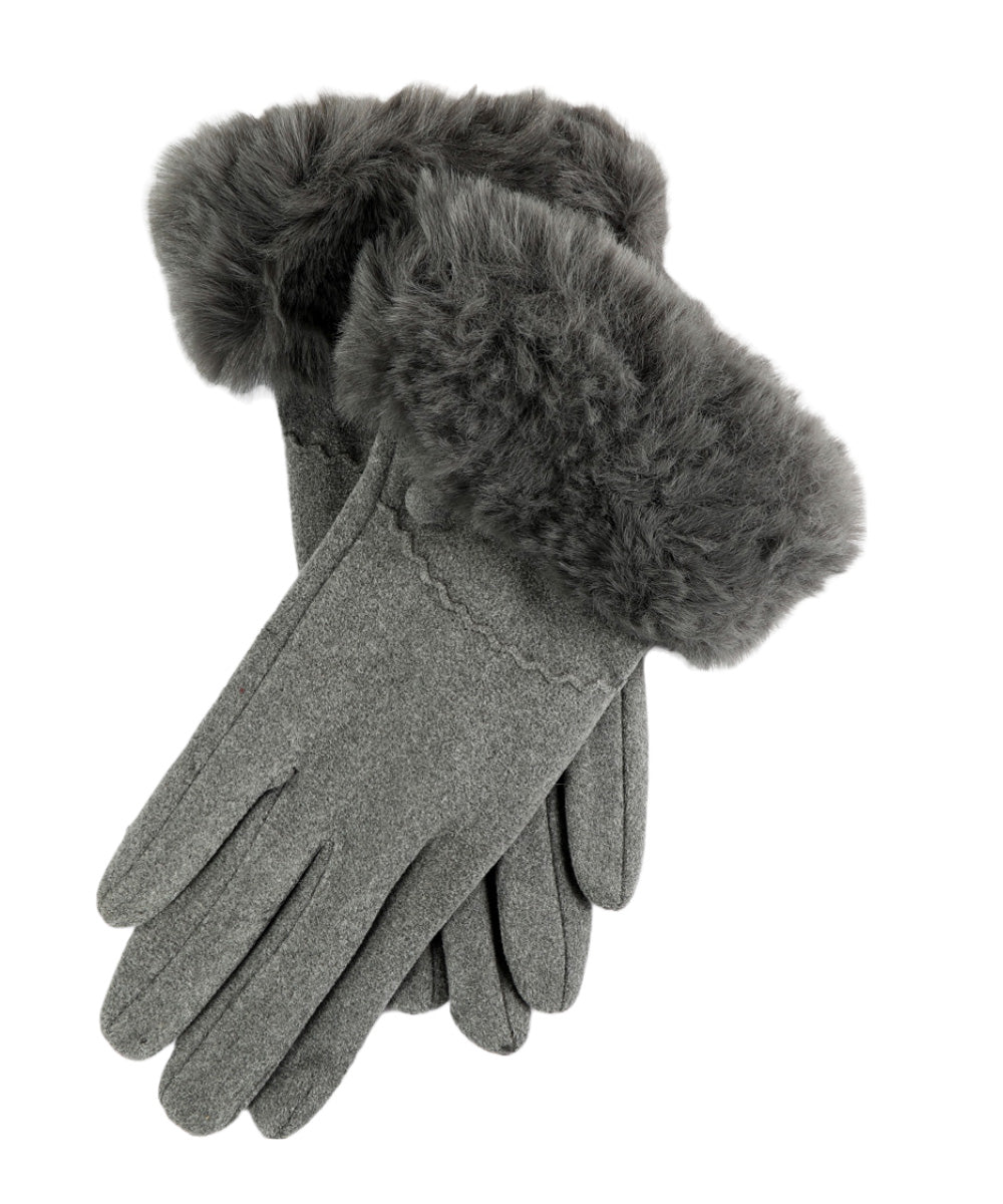 Μονόχρωμα γάντια με γούνινο τελείωμα.
