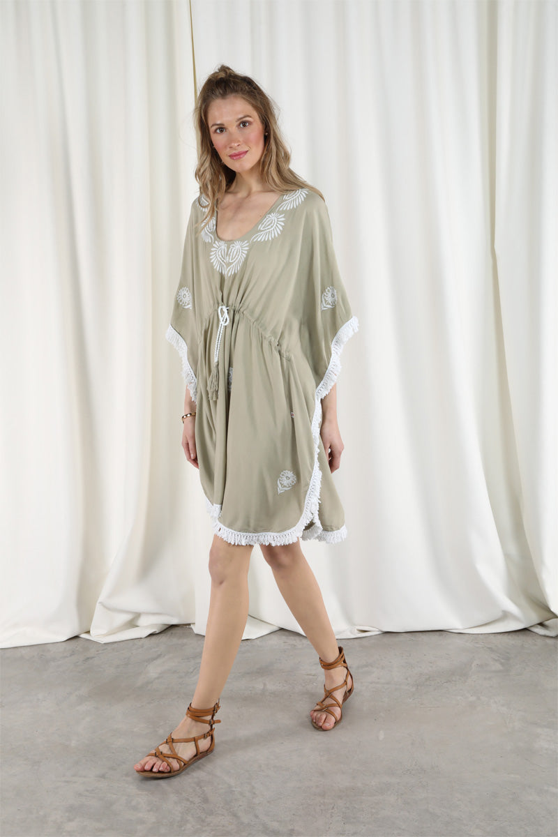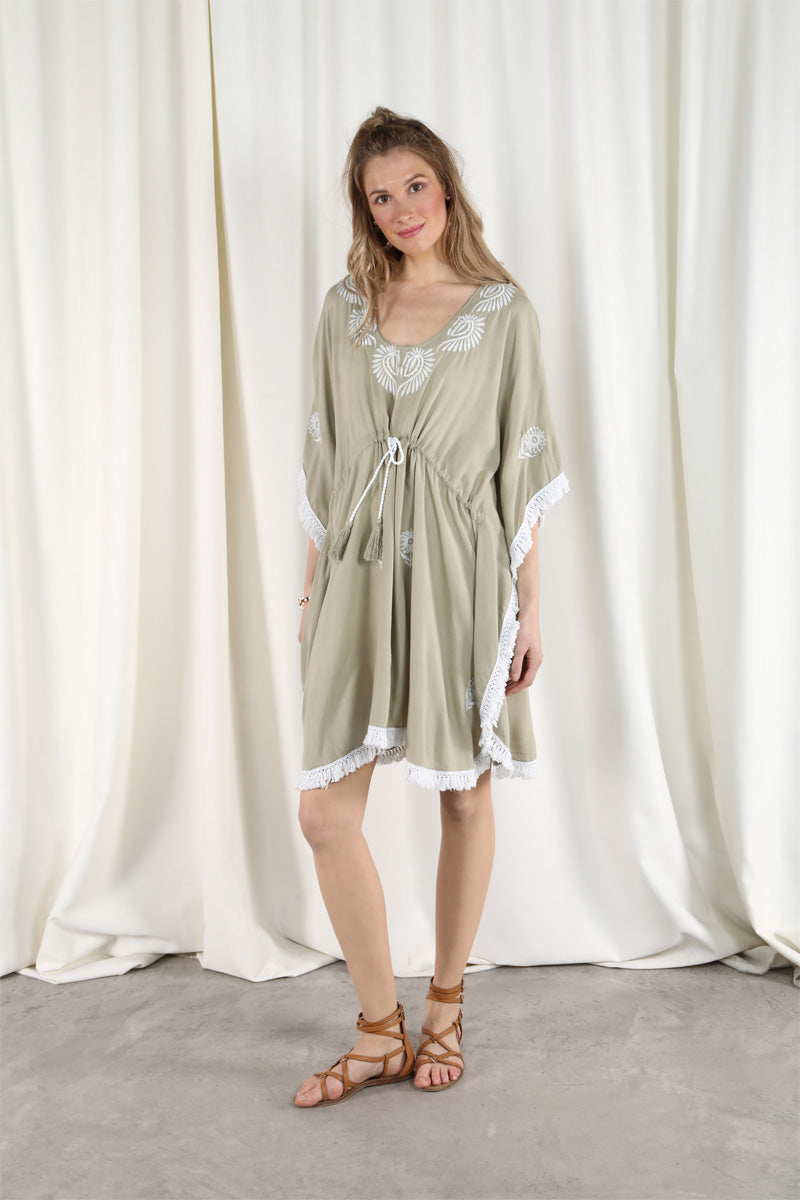 - Mini kaftan with a boho style for a relaxed, free-spirited look