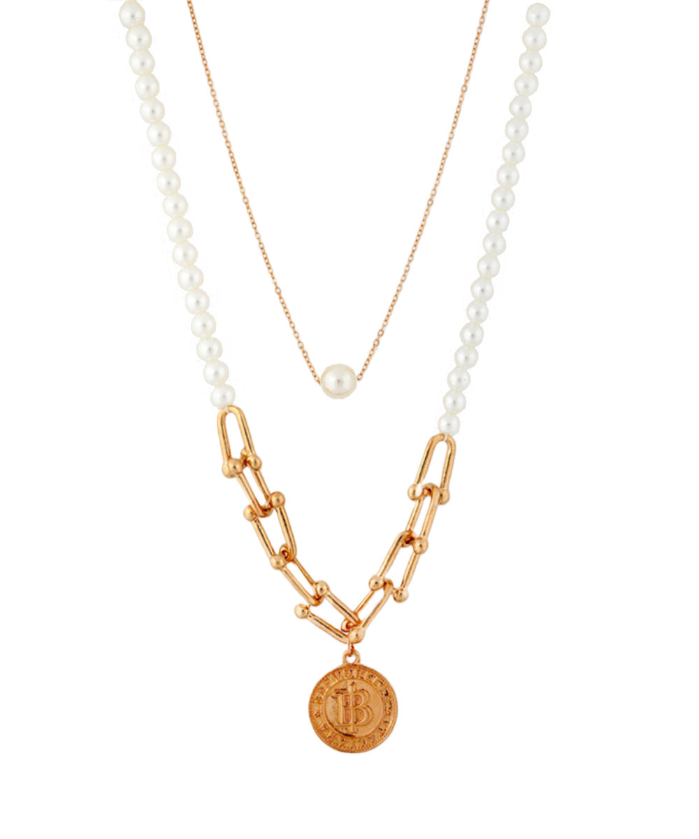 Διπλό κολίε με μία κοντή αλυσίδα με πέρλα και μία μεγαλύτερη απο πέρλες και τελείωμα σε χρυσό charm.