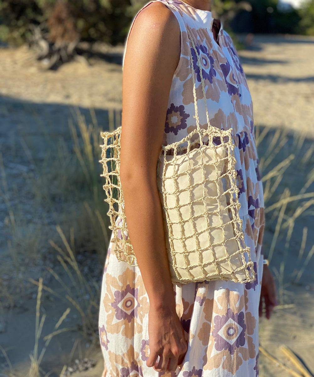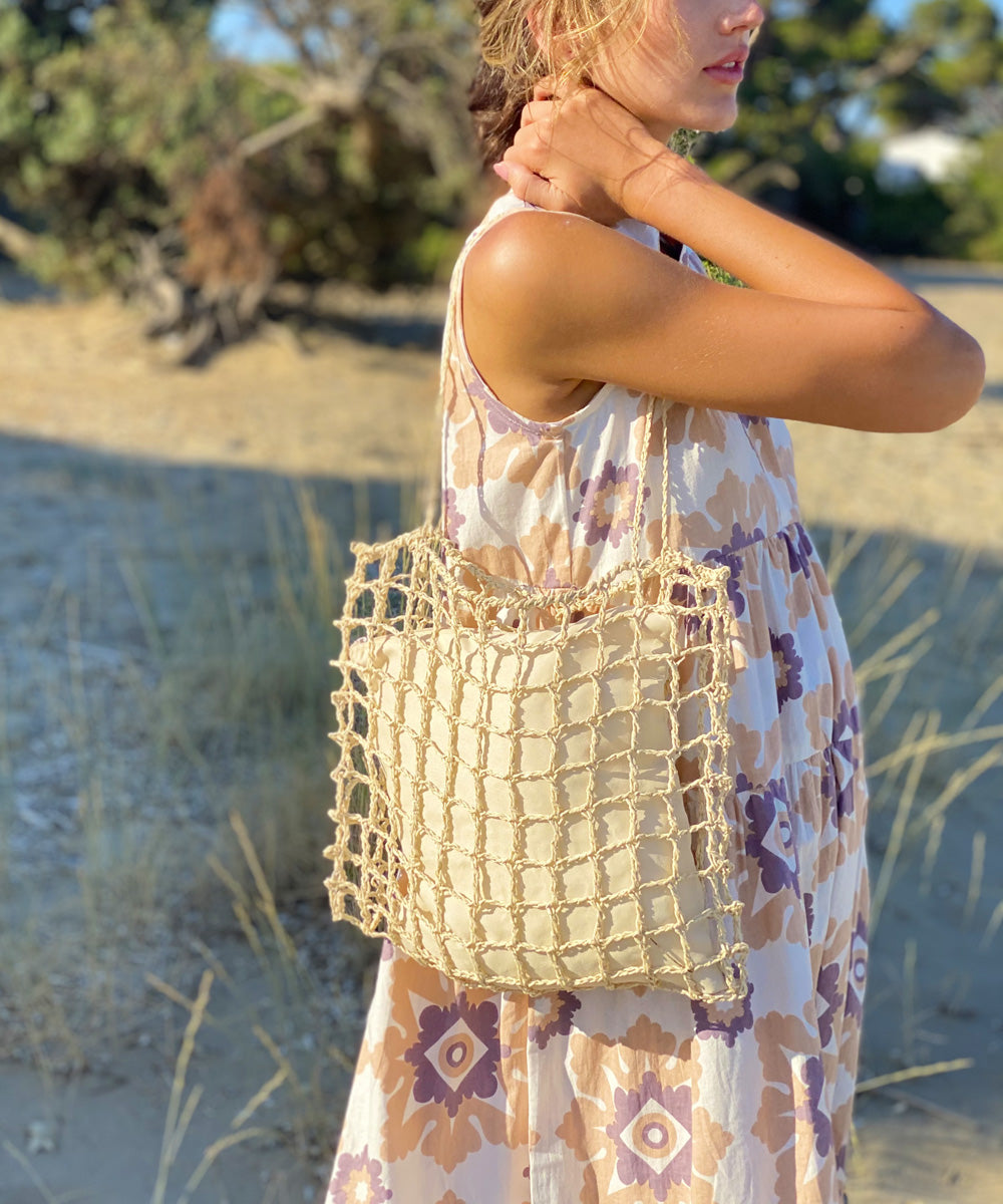 Πλεκτή Τσάντα Ώμου - Ιβουάρ