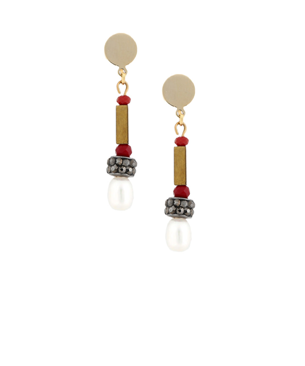 Κρεμαστά επίχρυσα σκουλαρίκια απο ατσάλι με πέρλες.