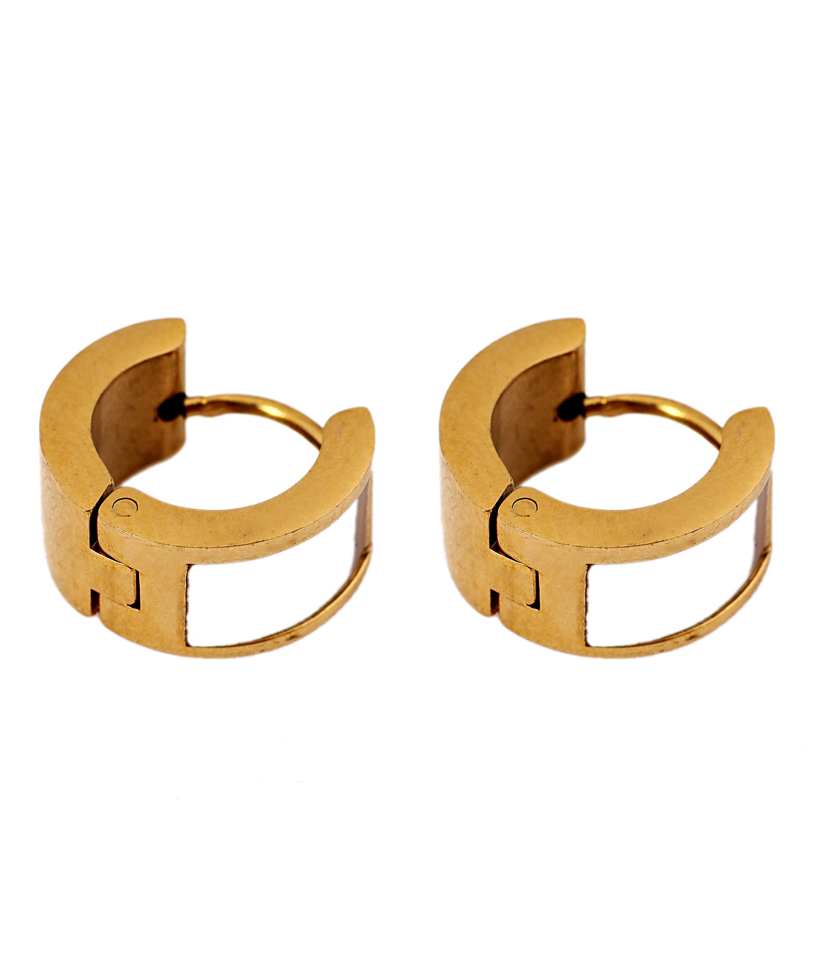 Huggie σκουλαρίκια σε χρυσούς και ιβουάρ τόνους.