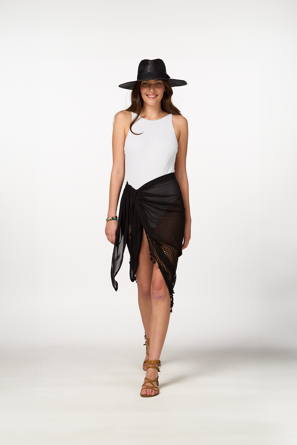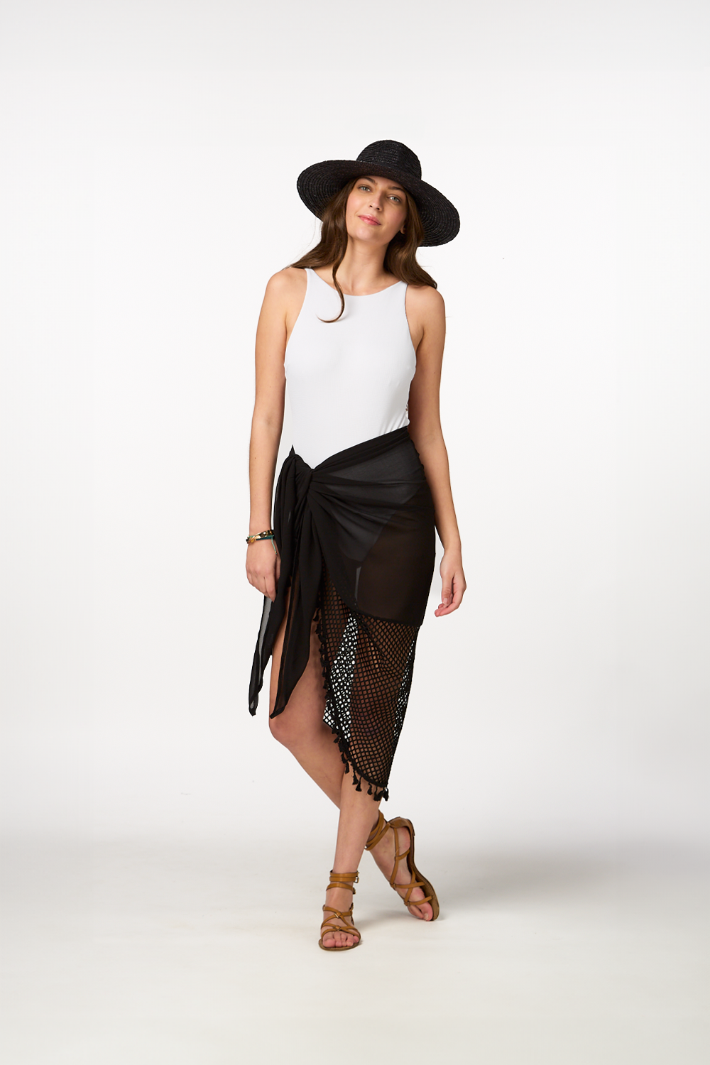 - Woven pareo with decorative tassels for a playful yet stylish look