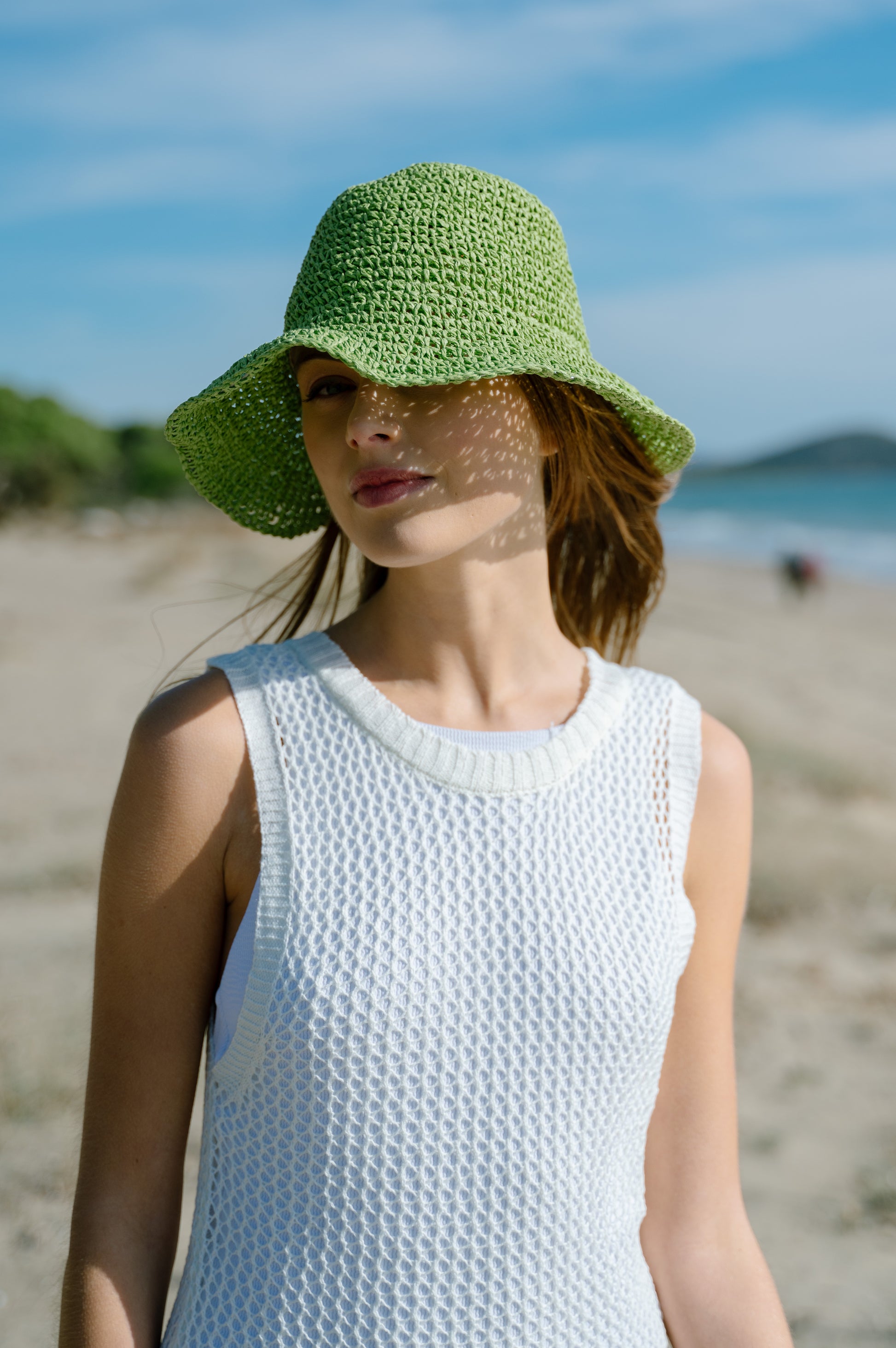 Πράσινο ψάθινο καπέλο για ιδιαίτερες εμφανίσεις.