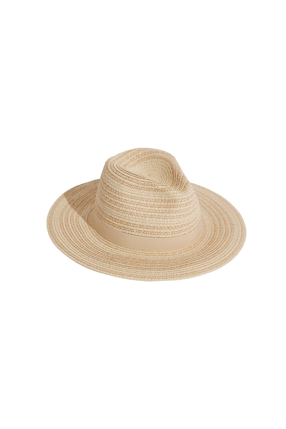 Ψάθινο ριγέ καπέλο με διακομητική κορδέλα στη βάση.