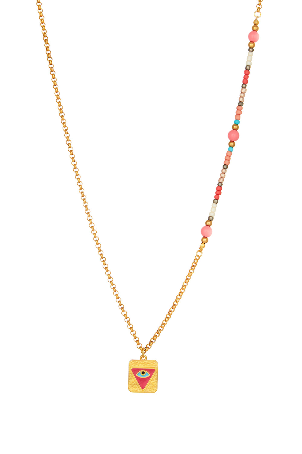 Ατσάλινο χρυσό κολιέ με ρόζ χάντρες.
