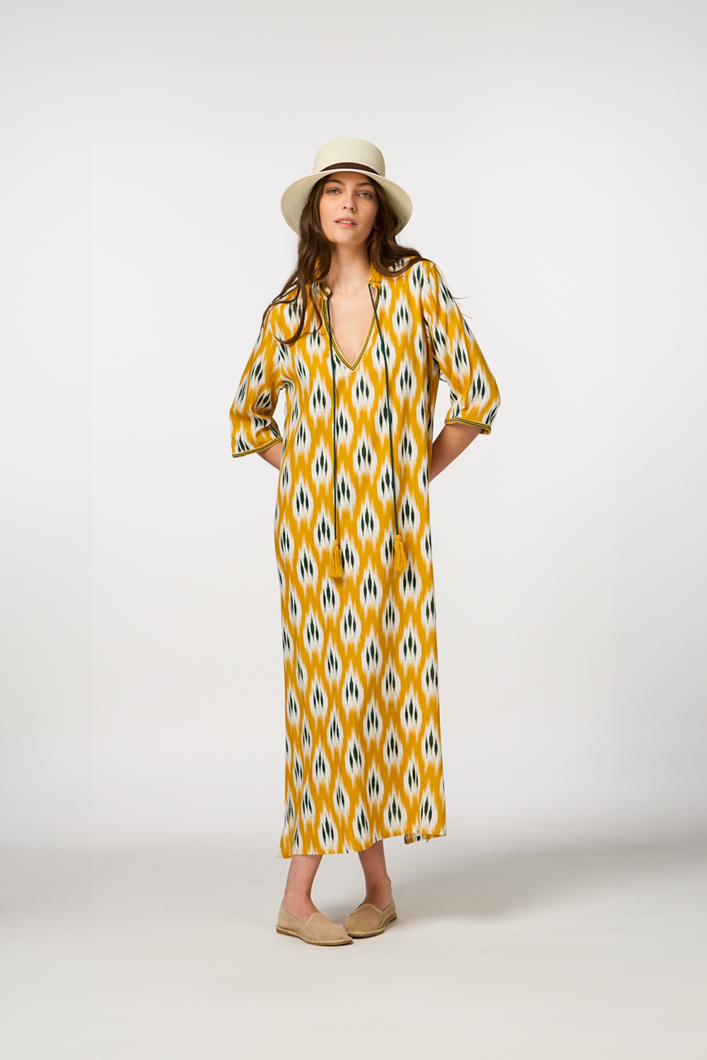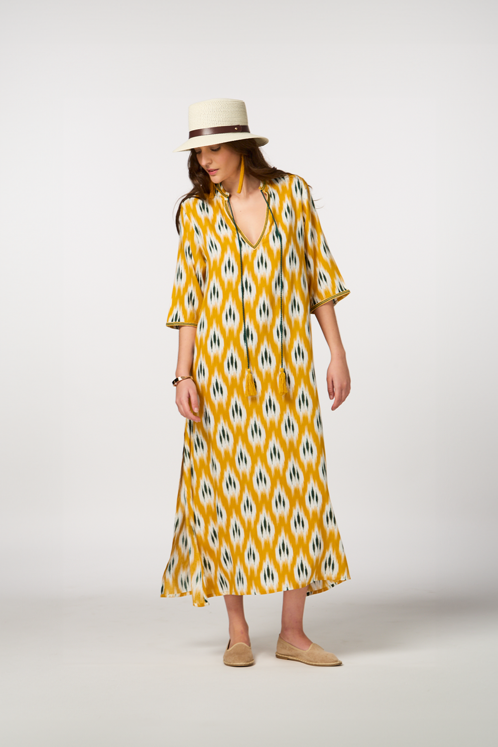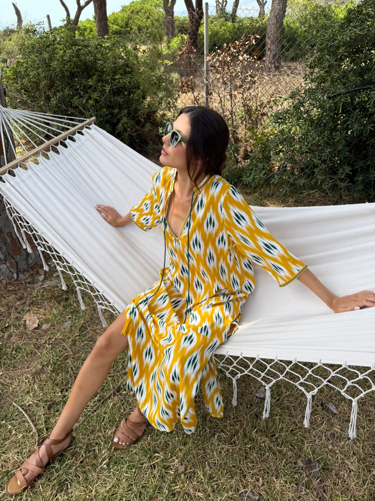 - Long-sleeve dress with cord details and tassels for a boho chic vibe