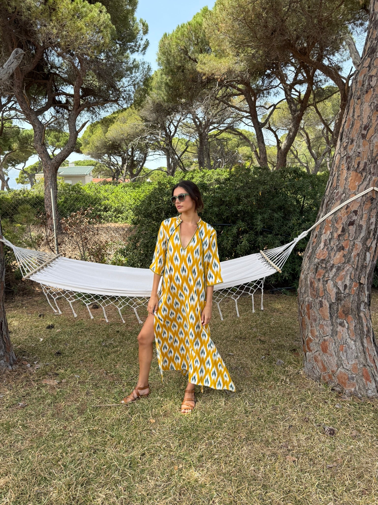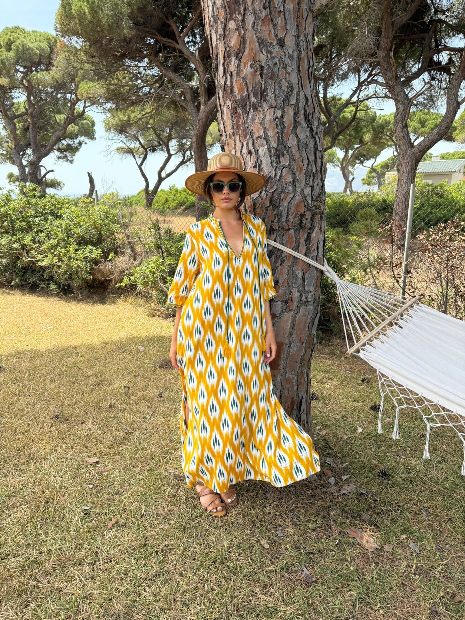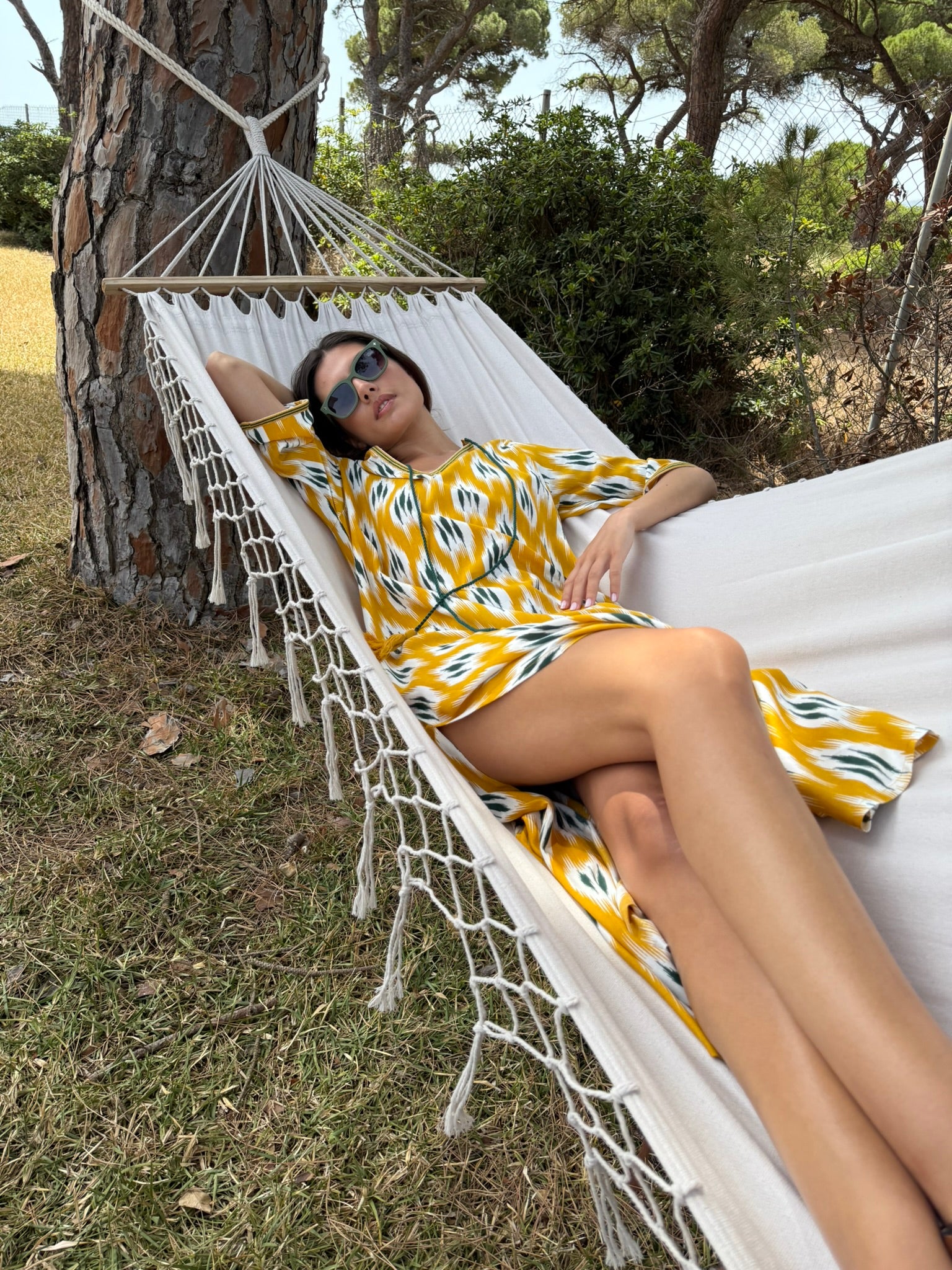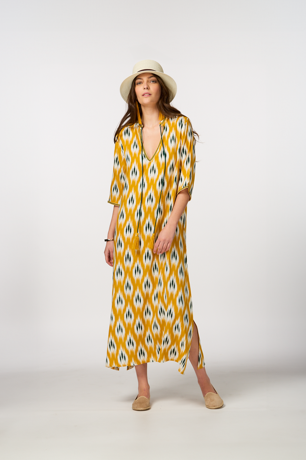 - Long-sleeve dress with cord details and tassels for a boho chic vibe