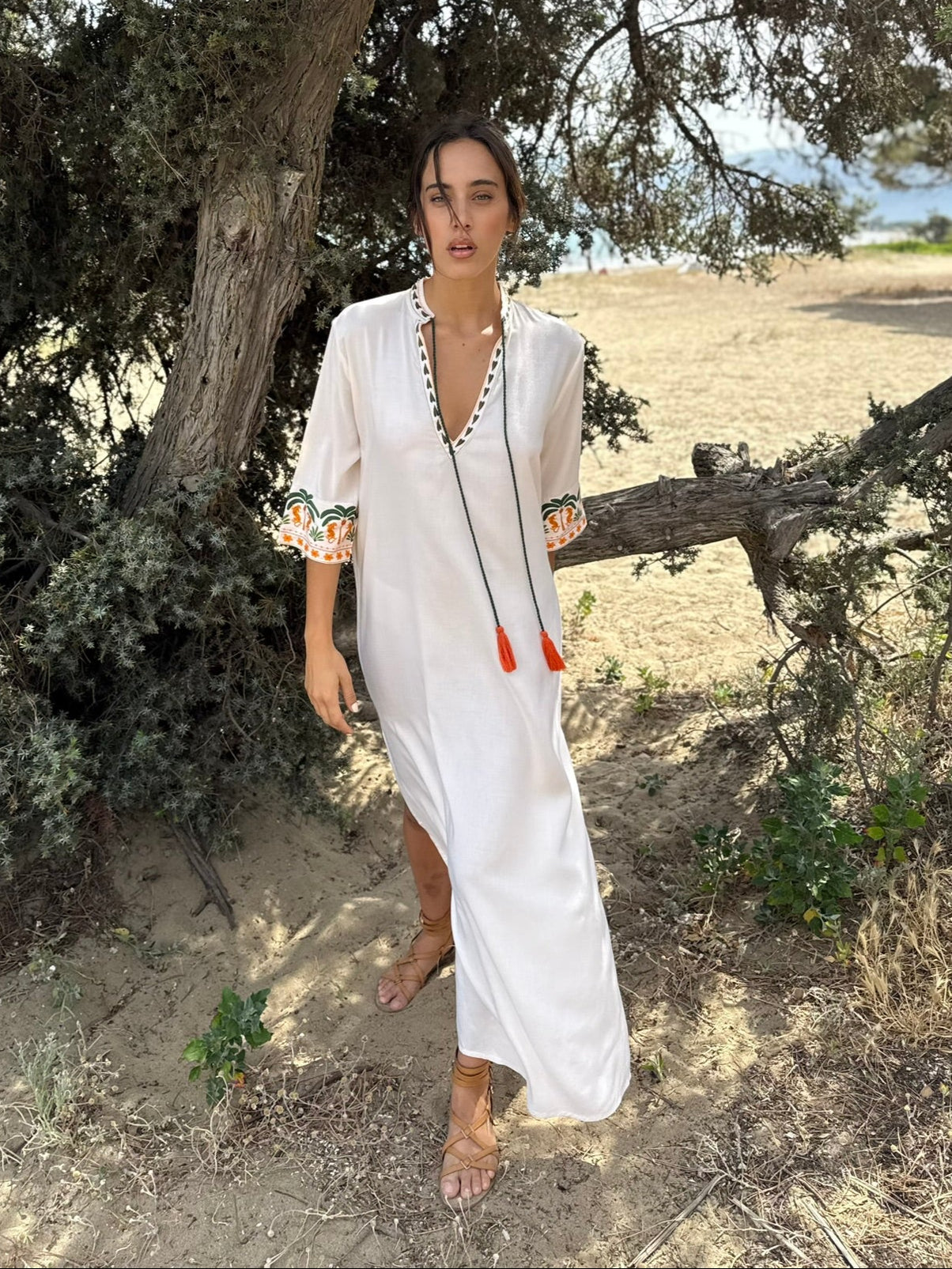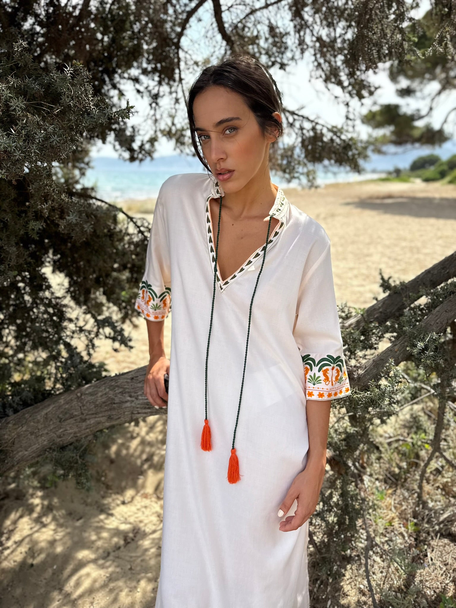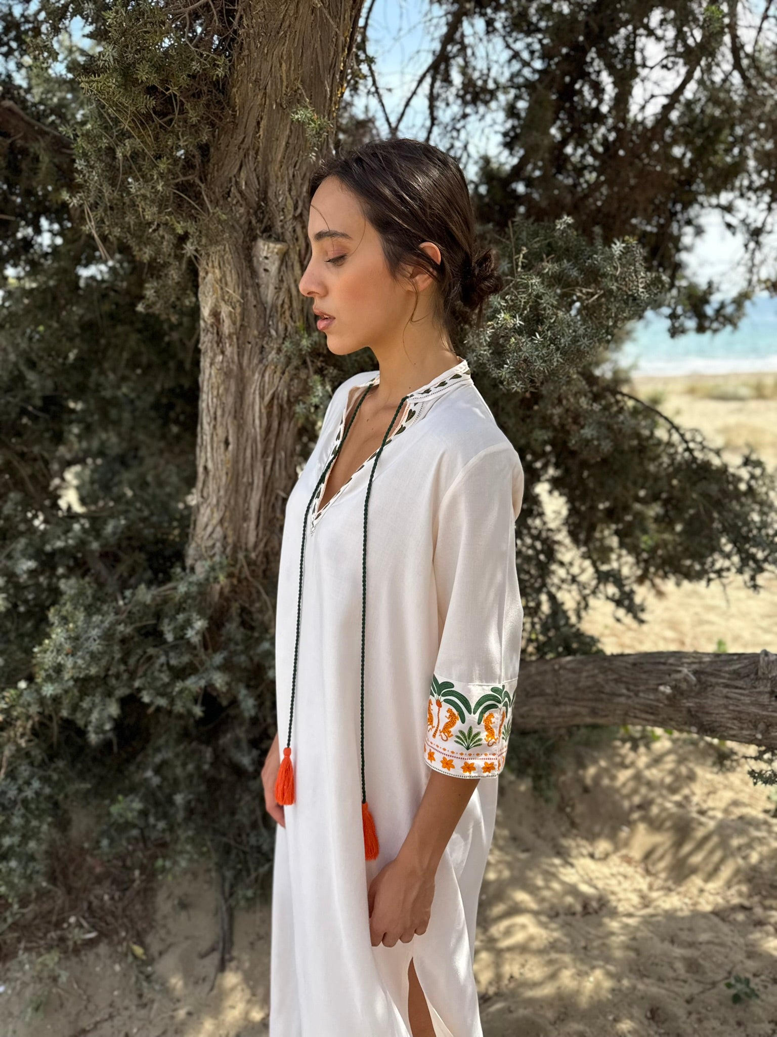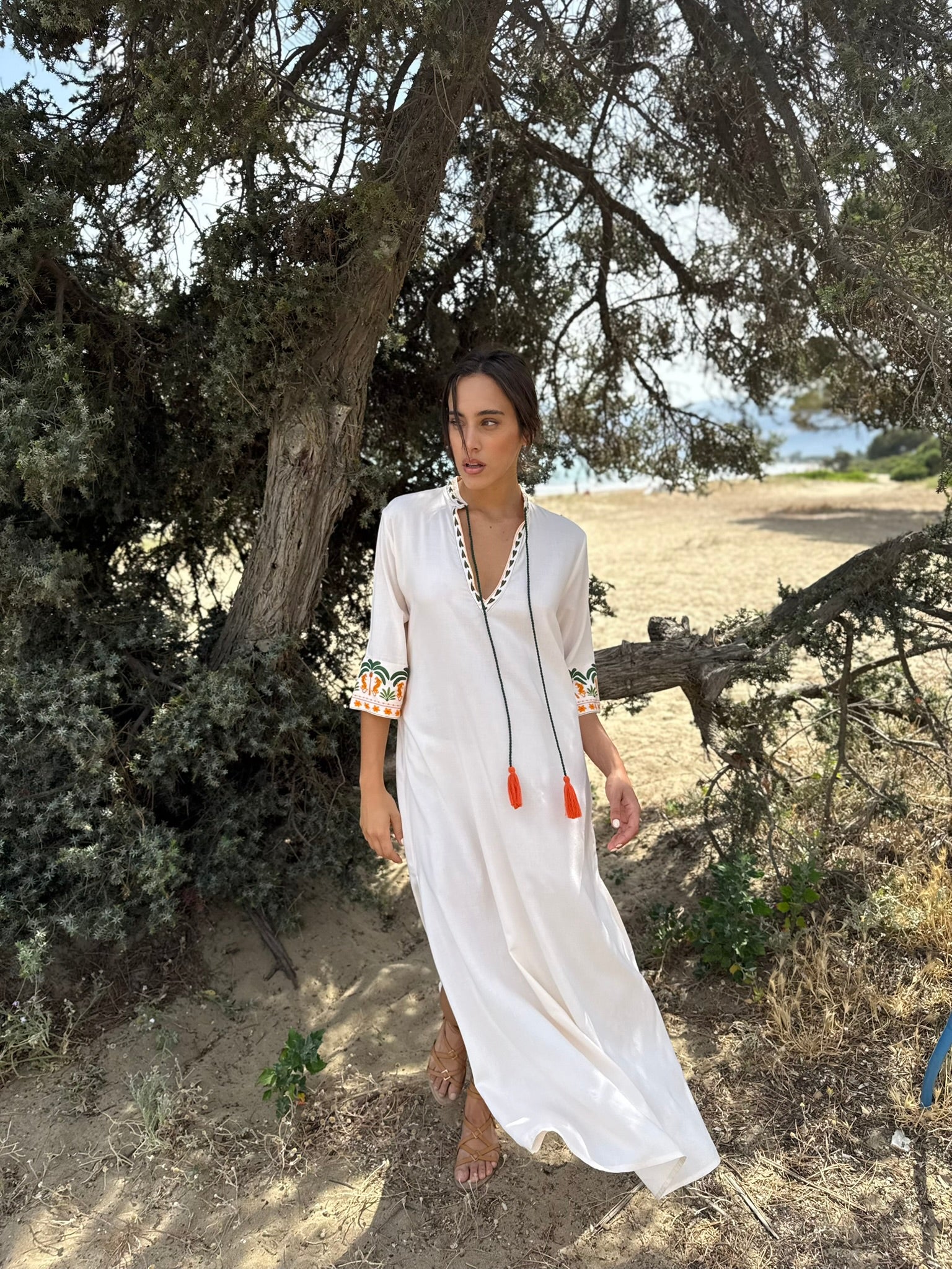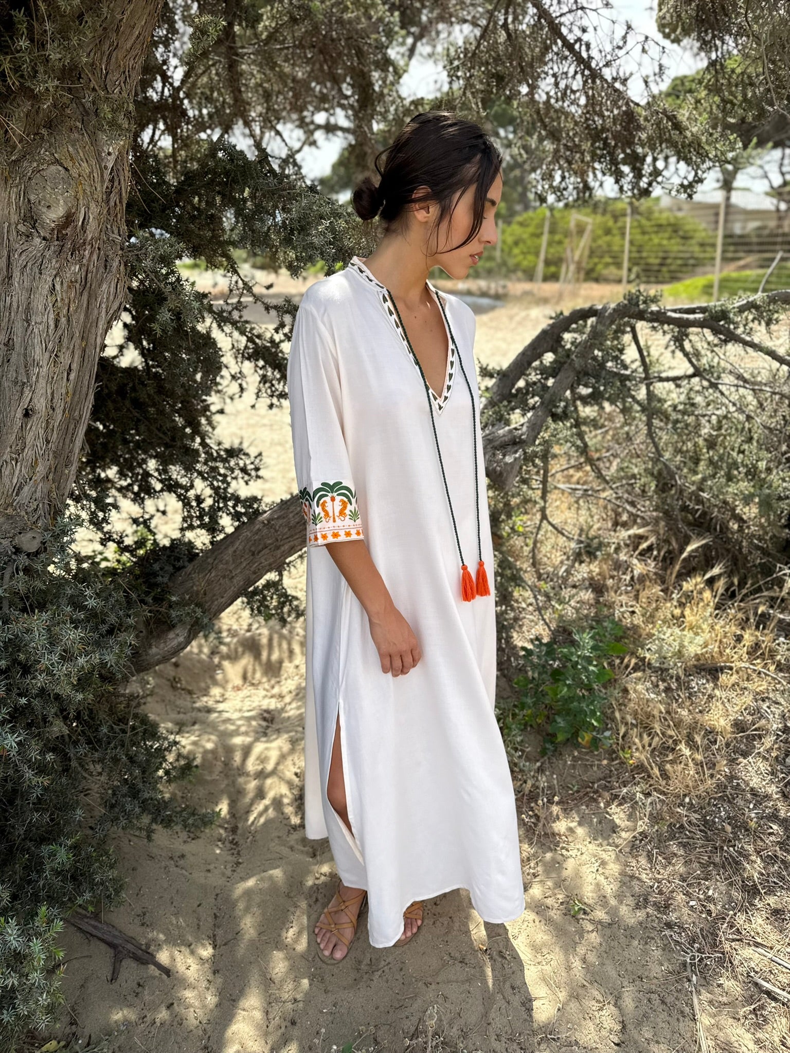 - Mini kaftan with long sleeves, featuring cords with tassels for a boho touch