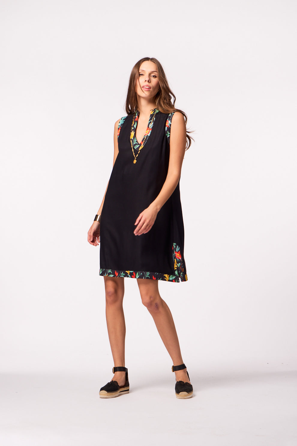 • Monochrome mini kaftan with a refined, elegant silhouette