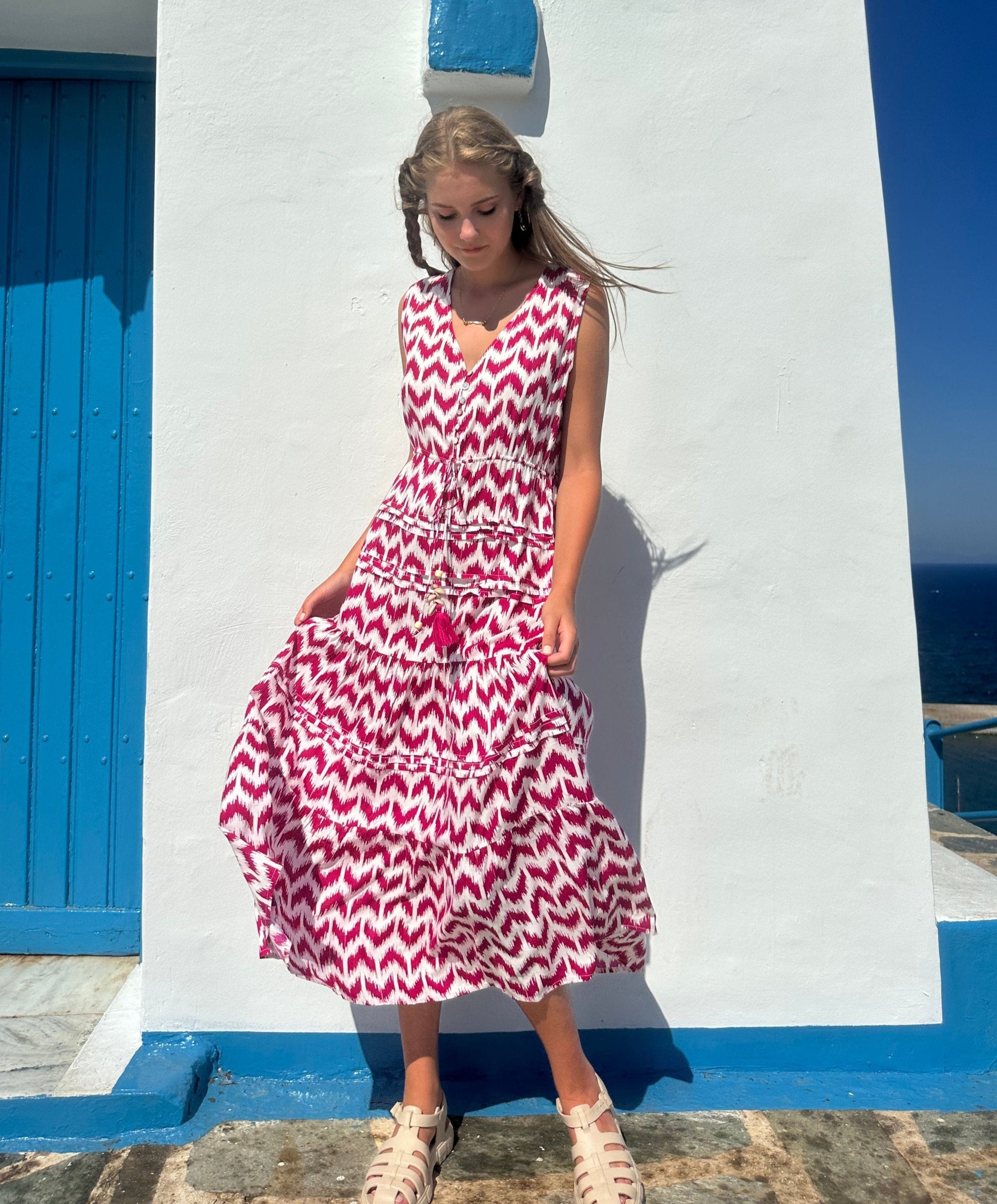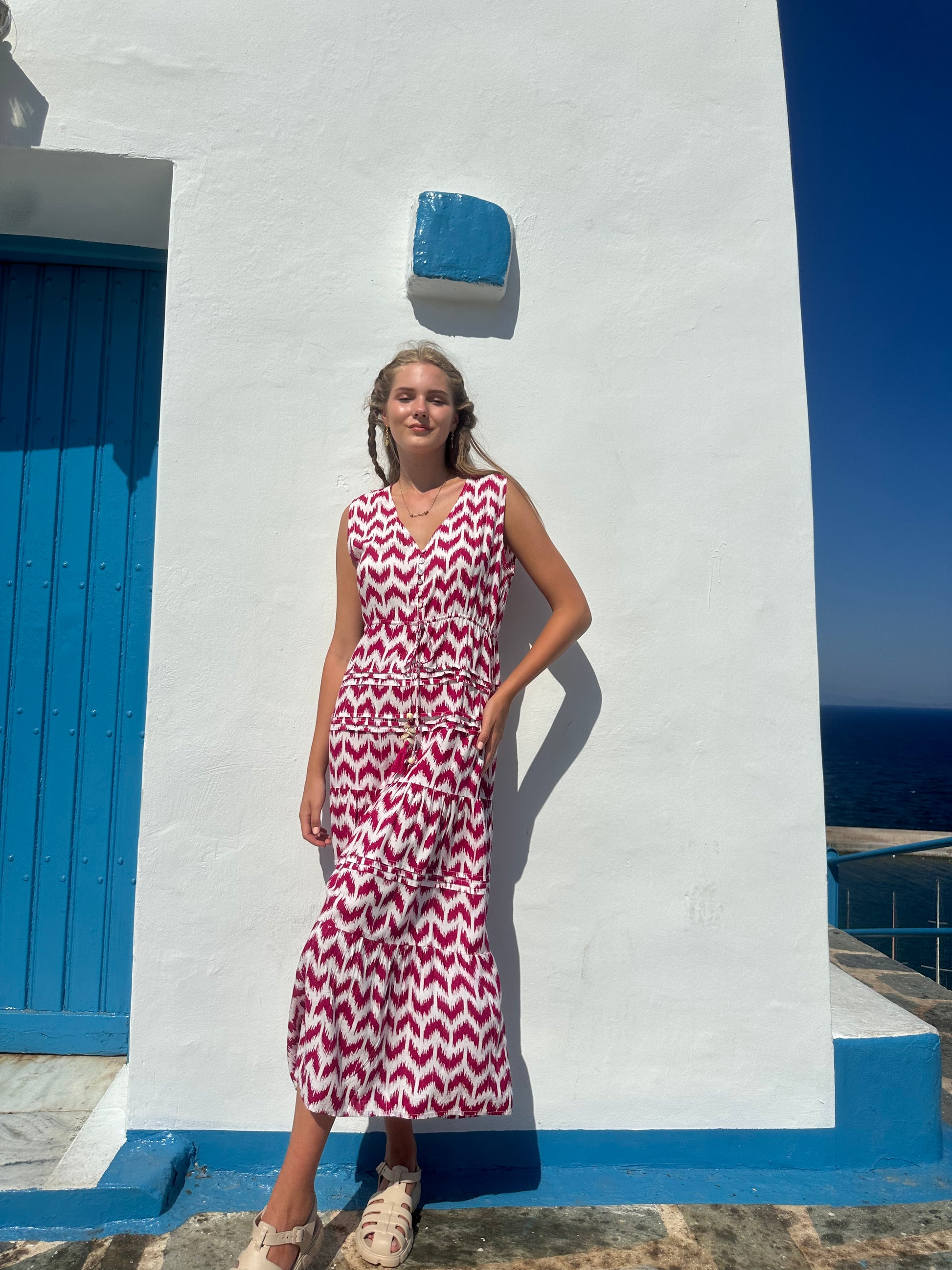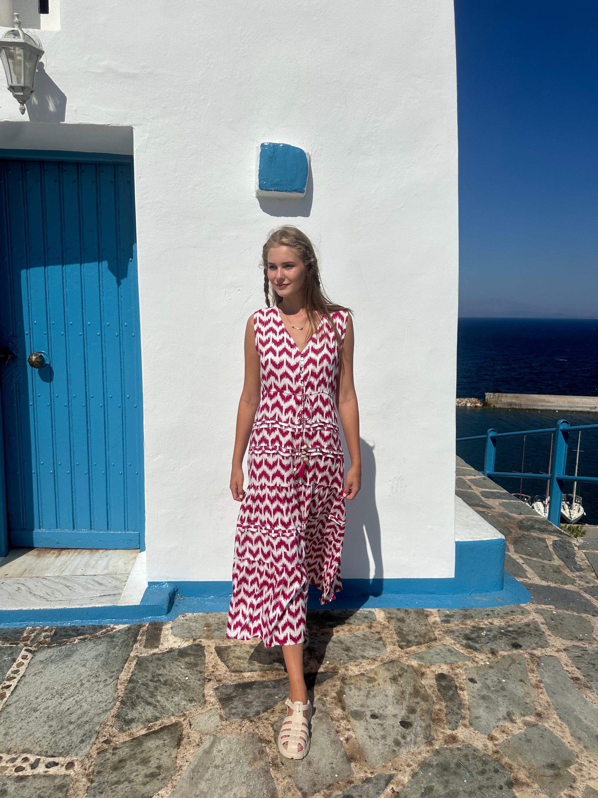 - V-neck design with buttons for a flattering, feminine silhouette