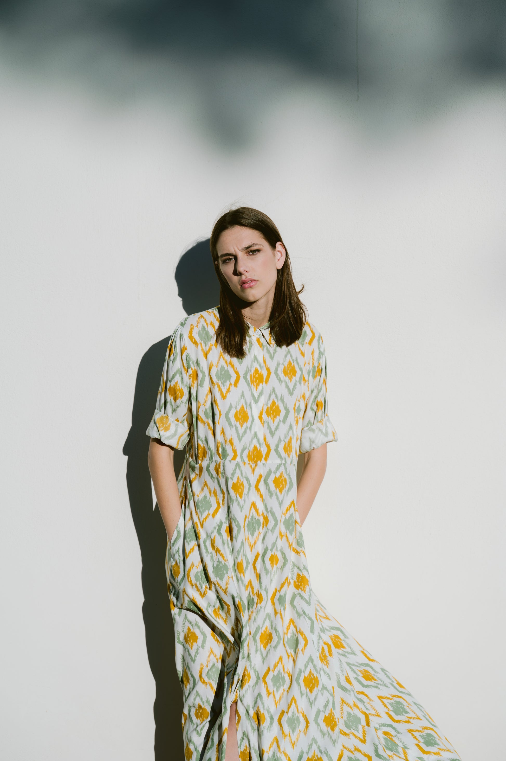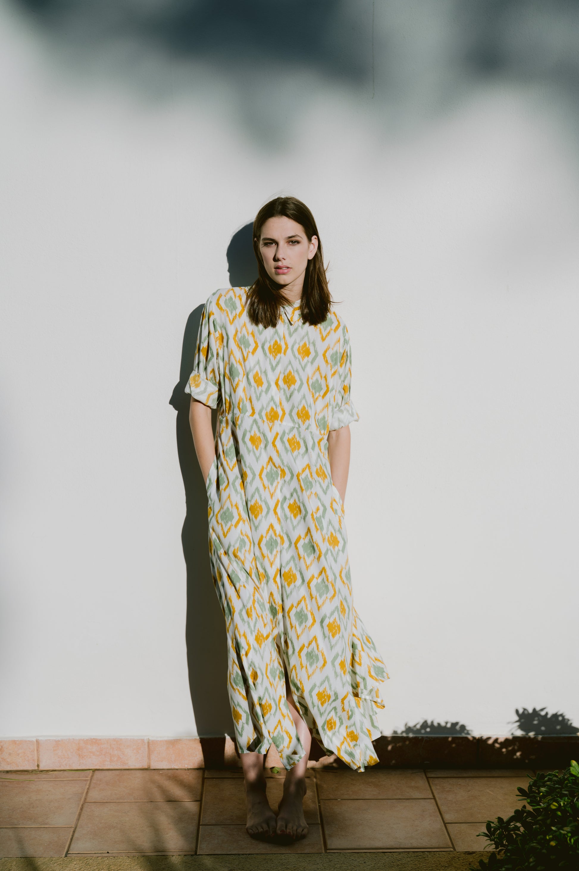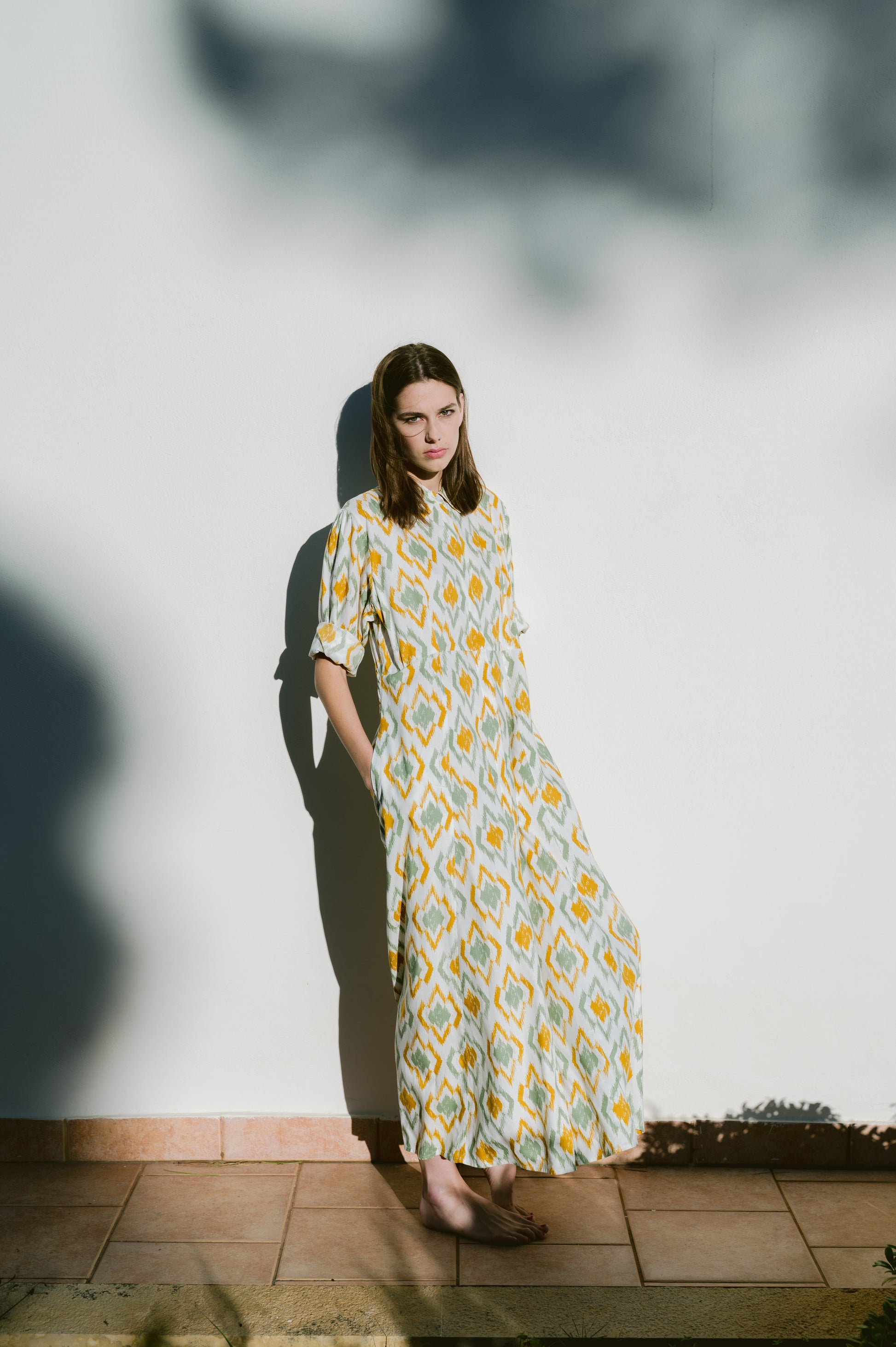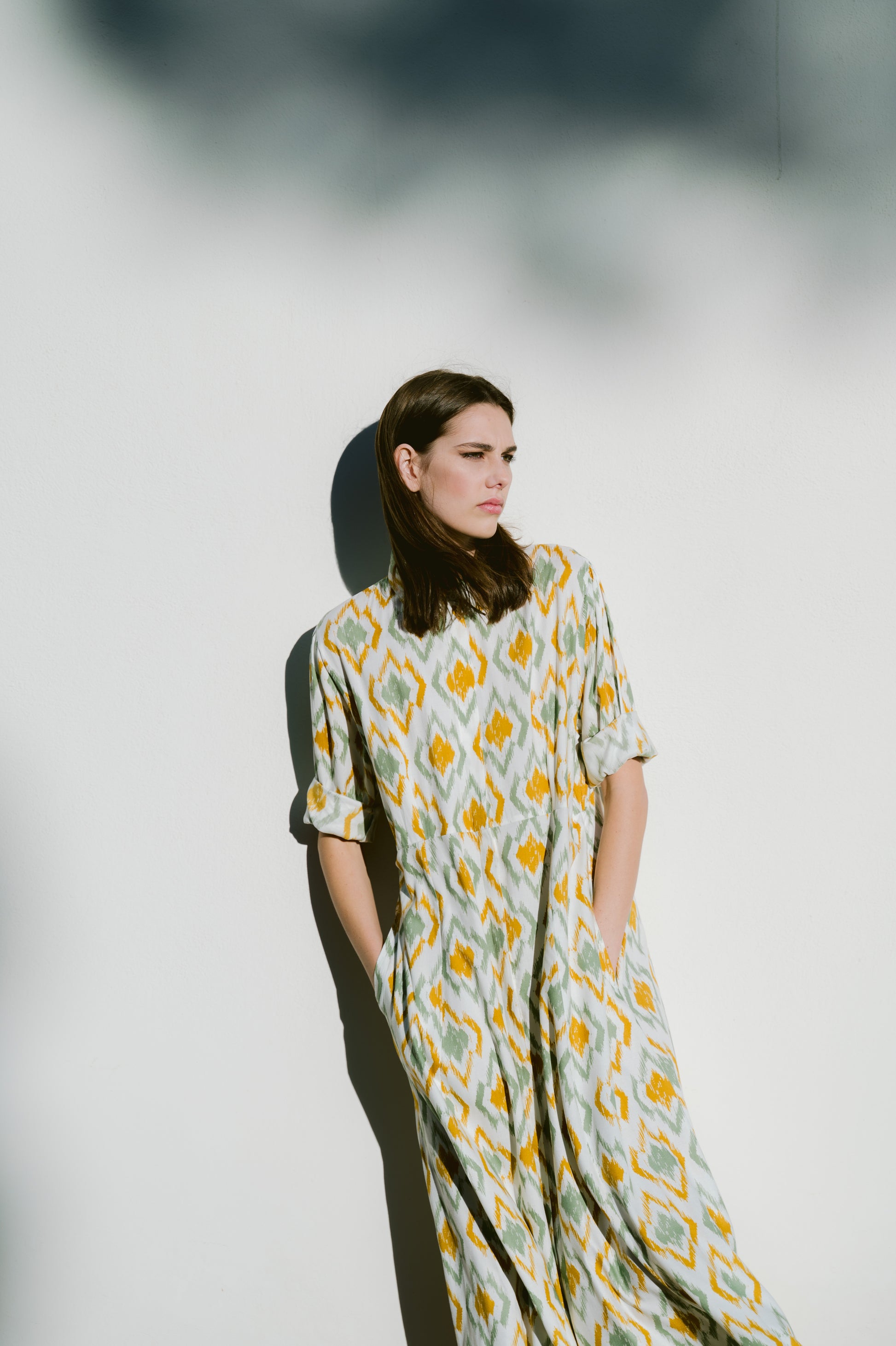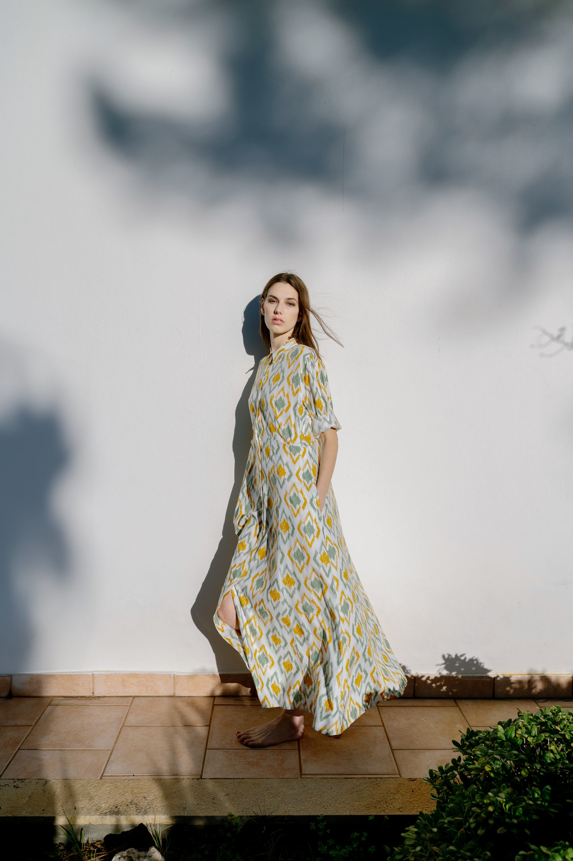 Υπέροχο μακρυμάνικο φόρεμα, με κομψό print, άνετη εφαρμογή που το καθιστά ιδανικό για όλες τις ώρες της ημέρας. Κλείνει στο μπροστινό μέρος με κουμπιά. Κατασκευασμένο από φυσικά υλικά.