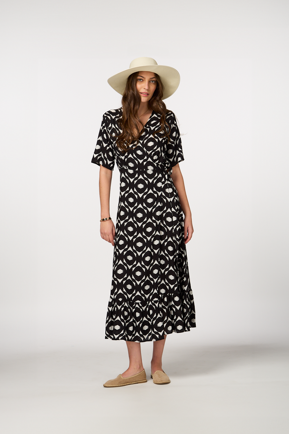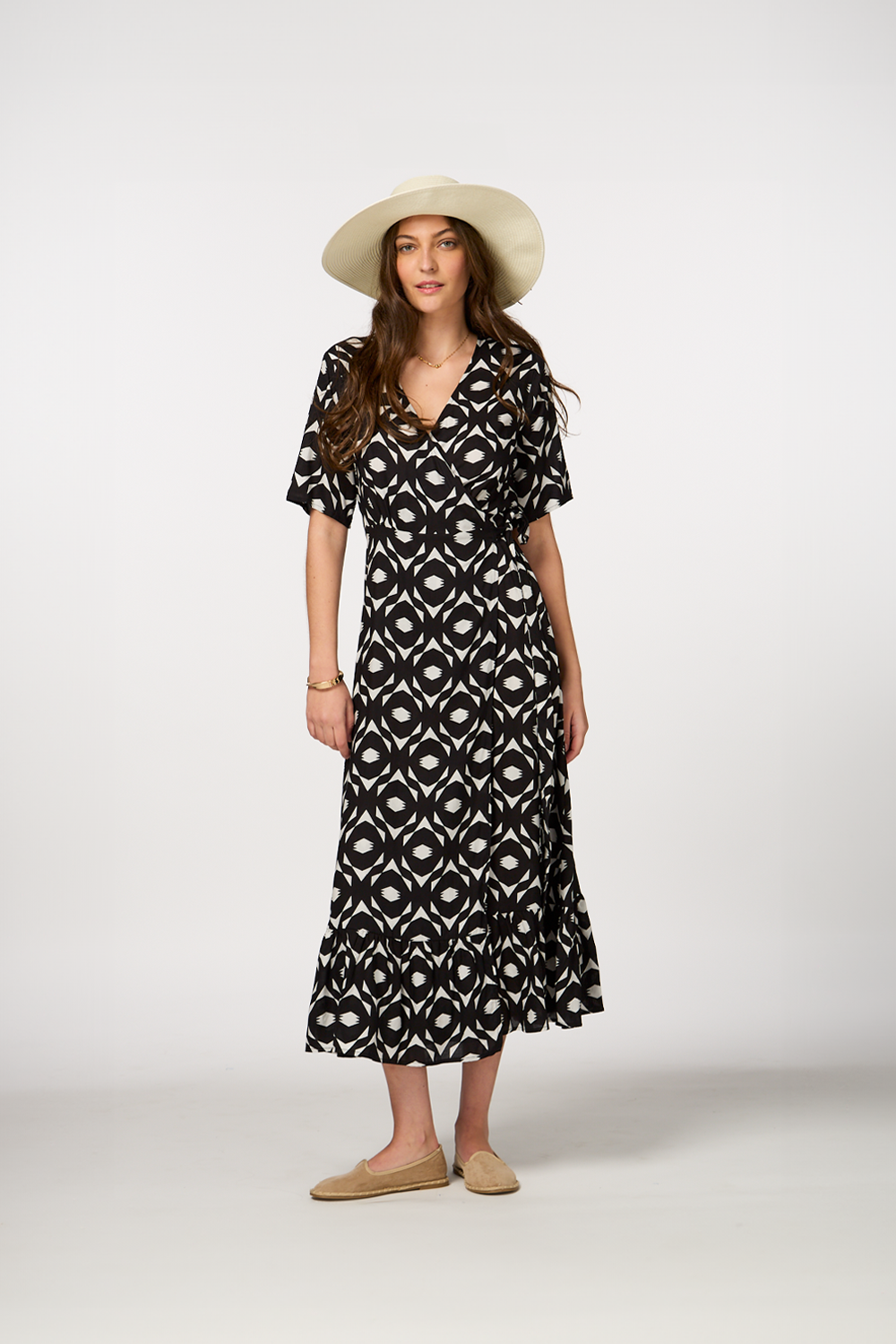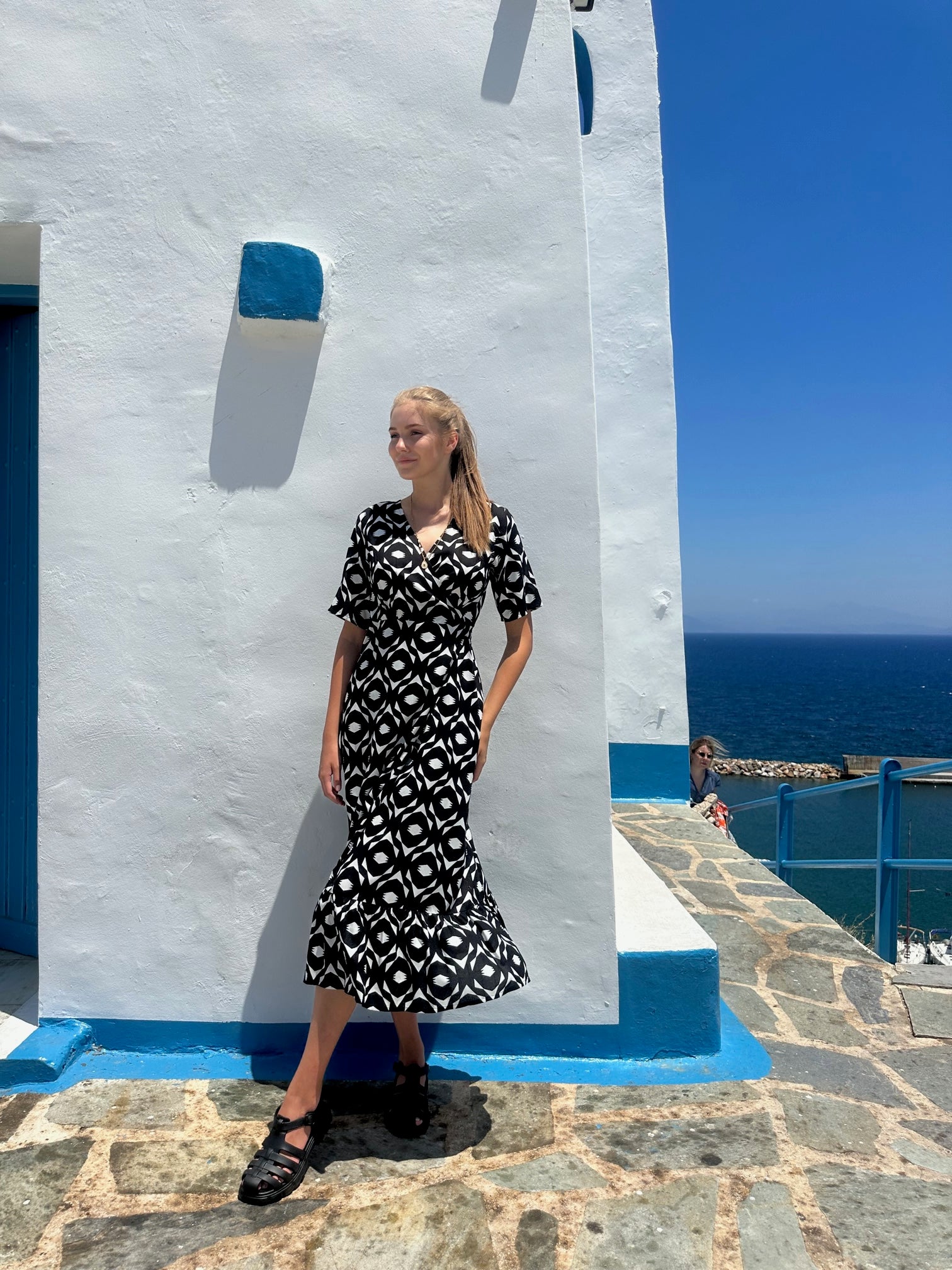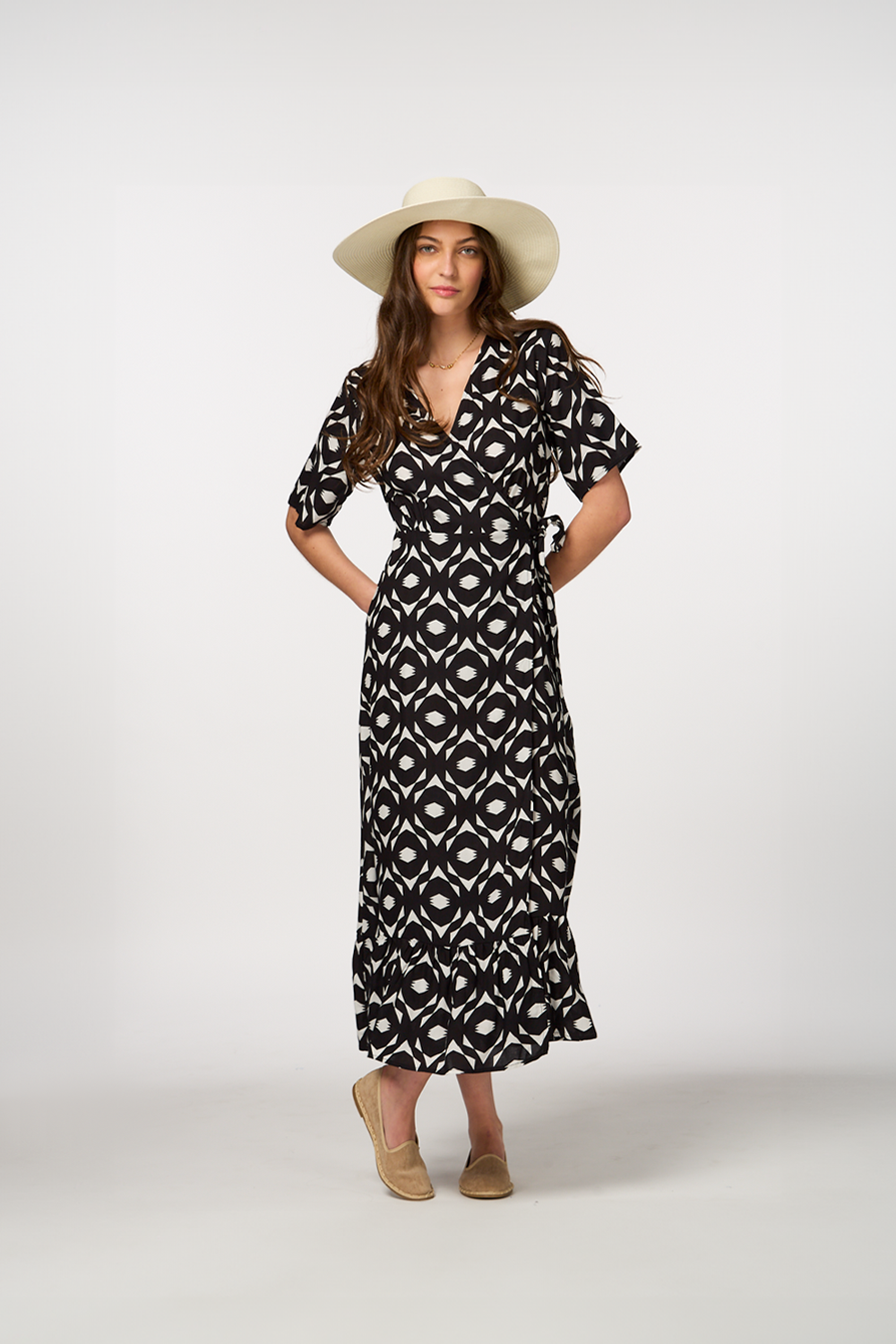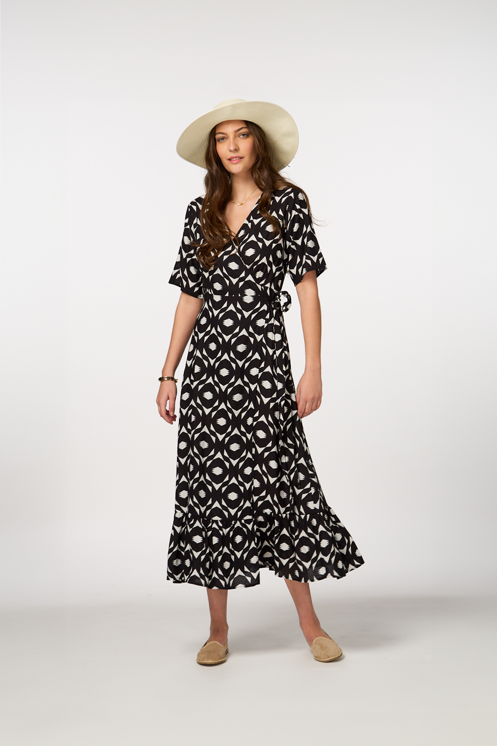• Maxi with a geometric print in black for a bold, modern look