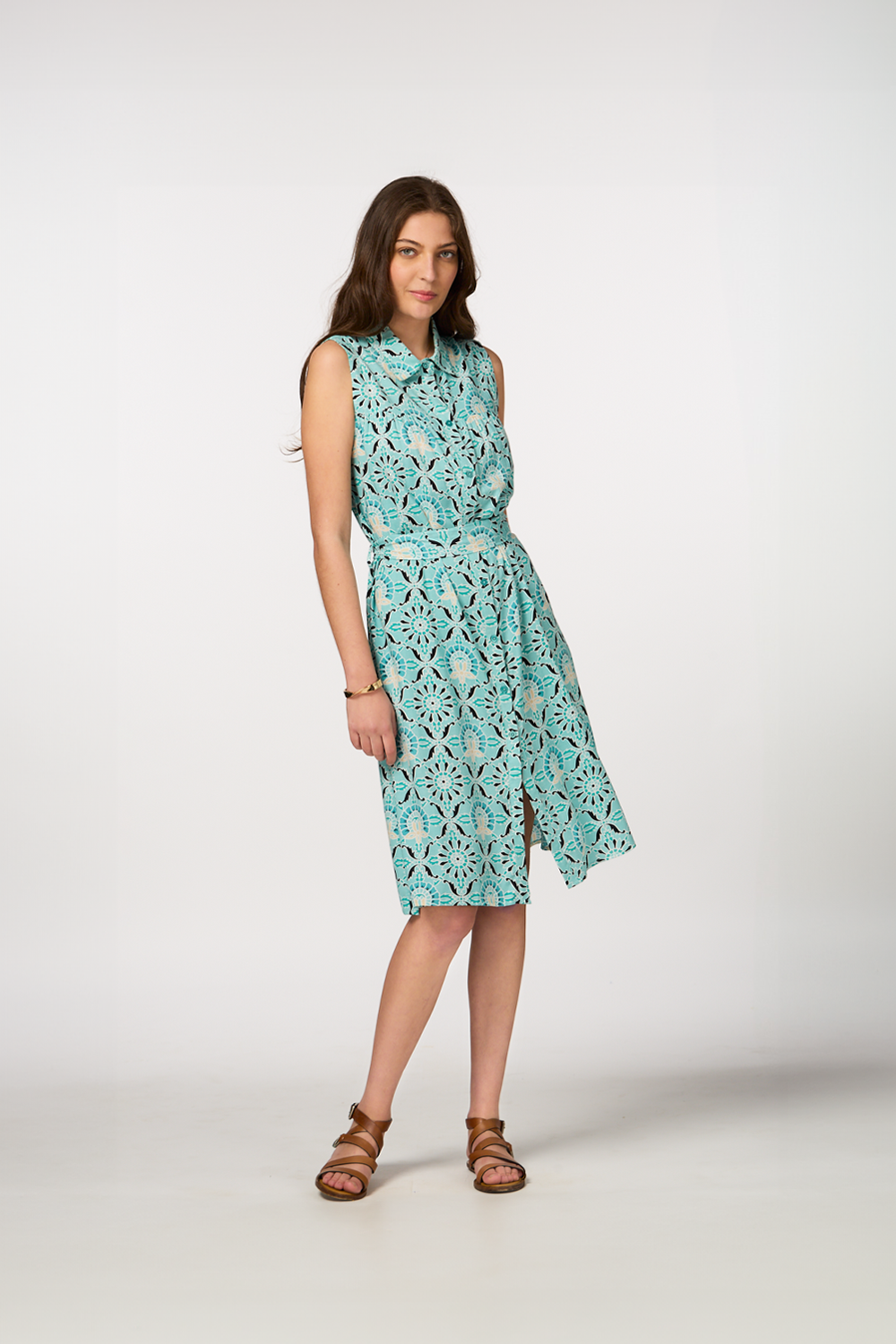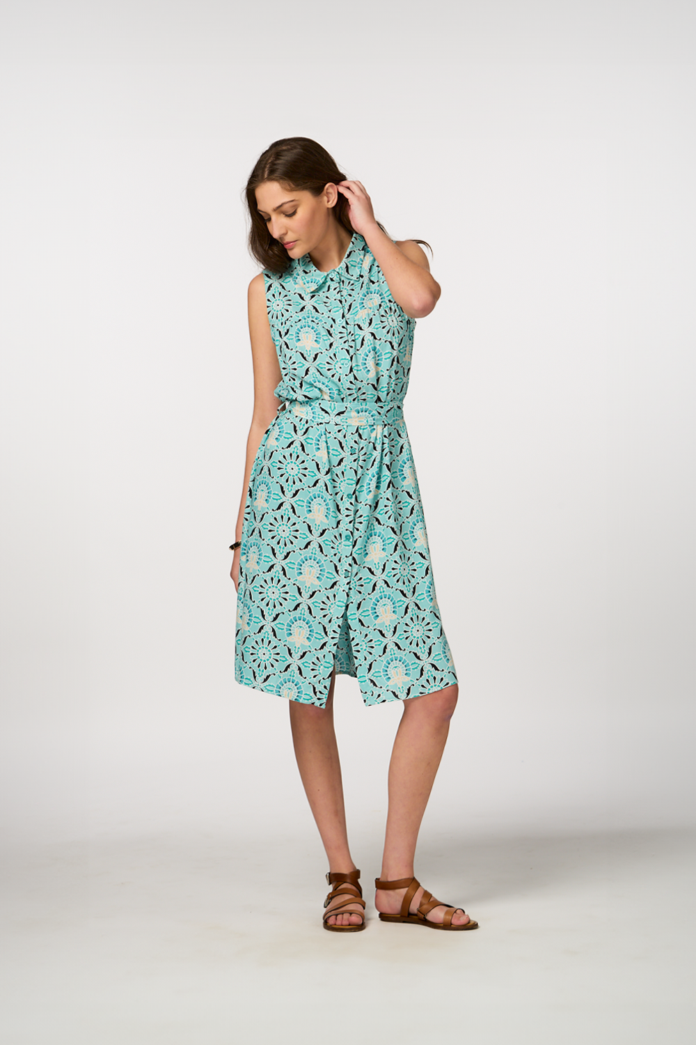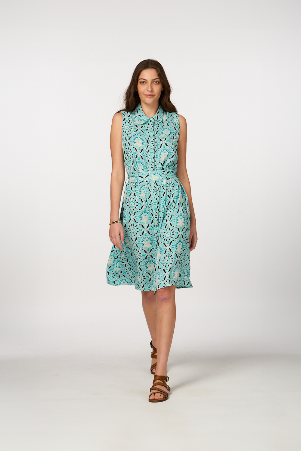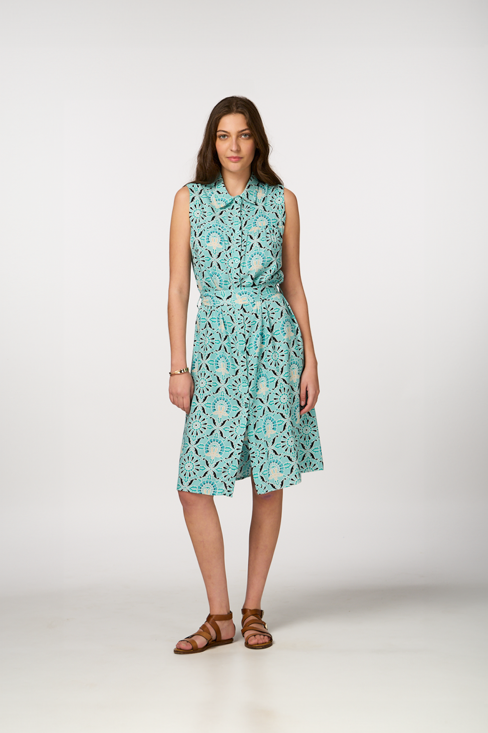 - Sleeveless mini dress in vibrant printed colors for a bold, eye-catching look
