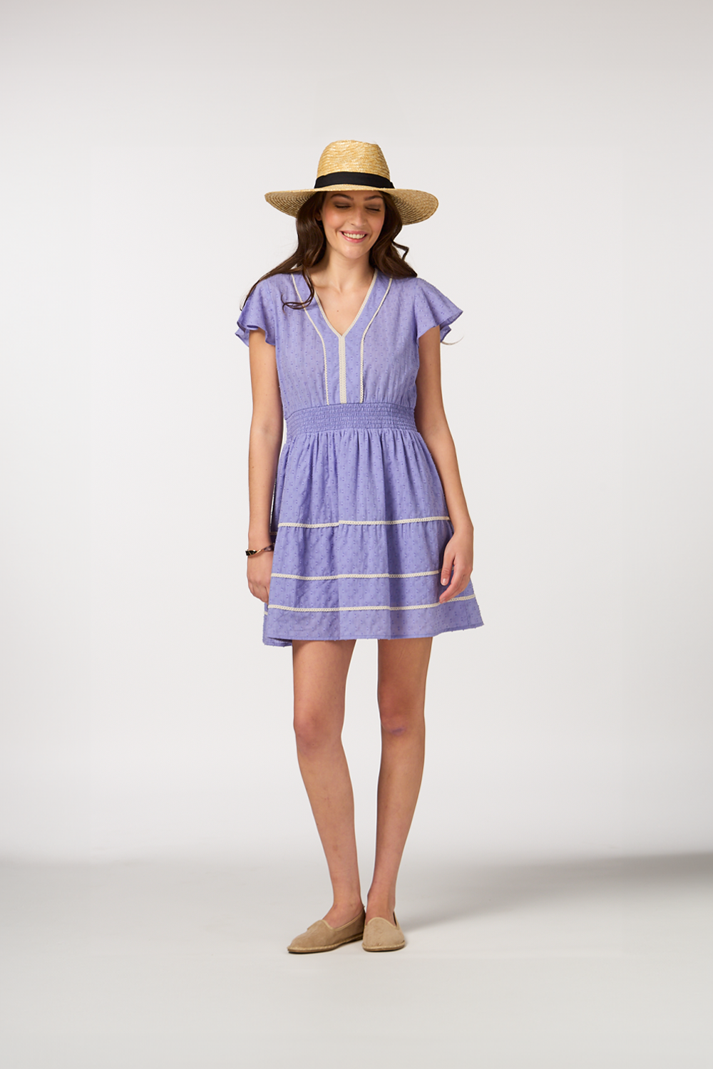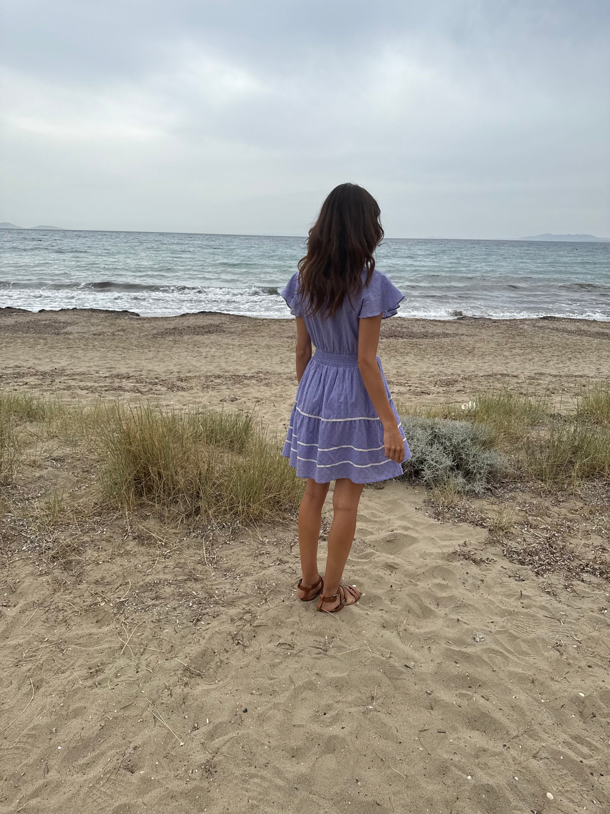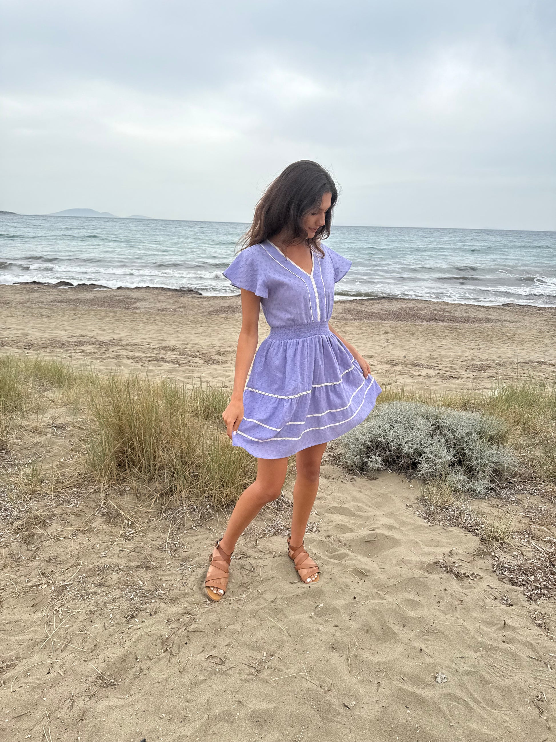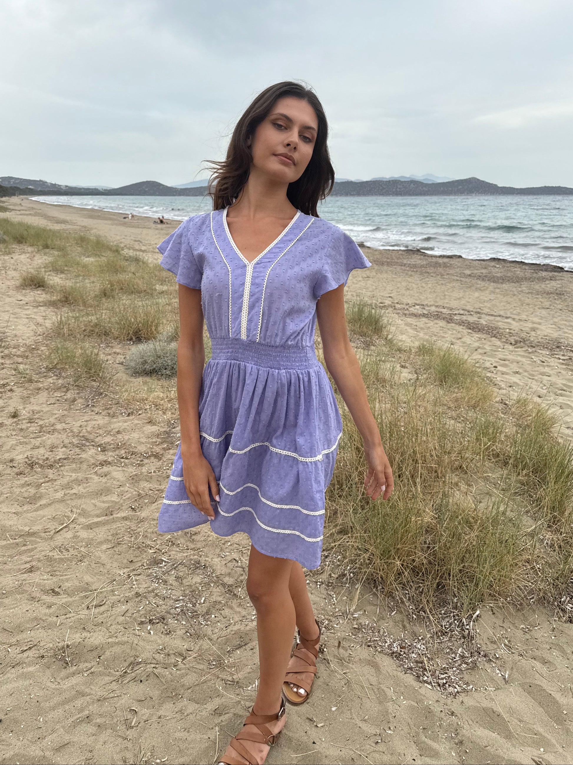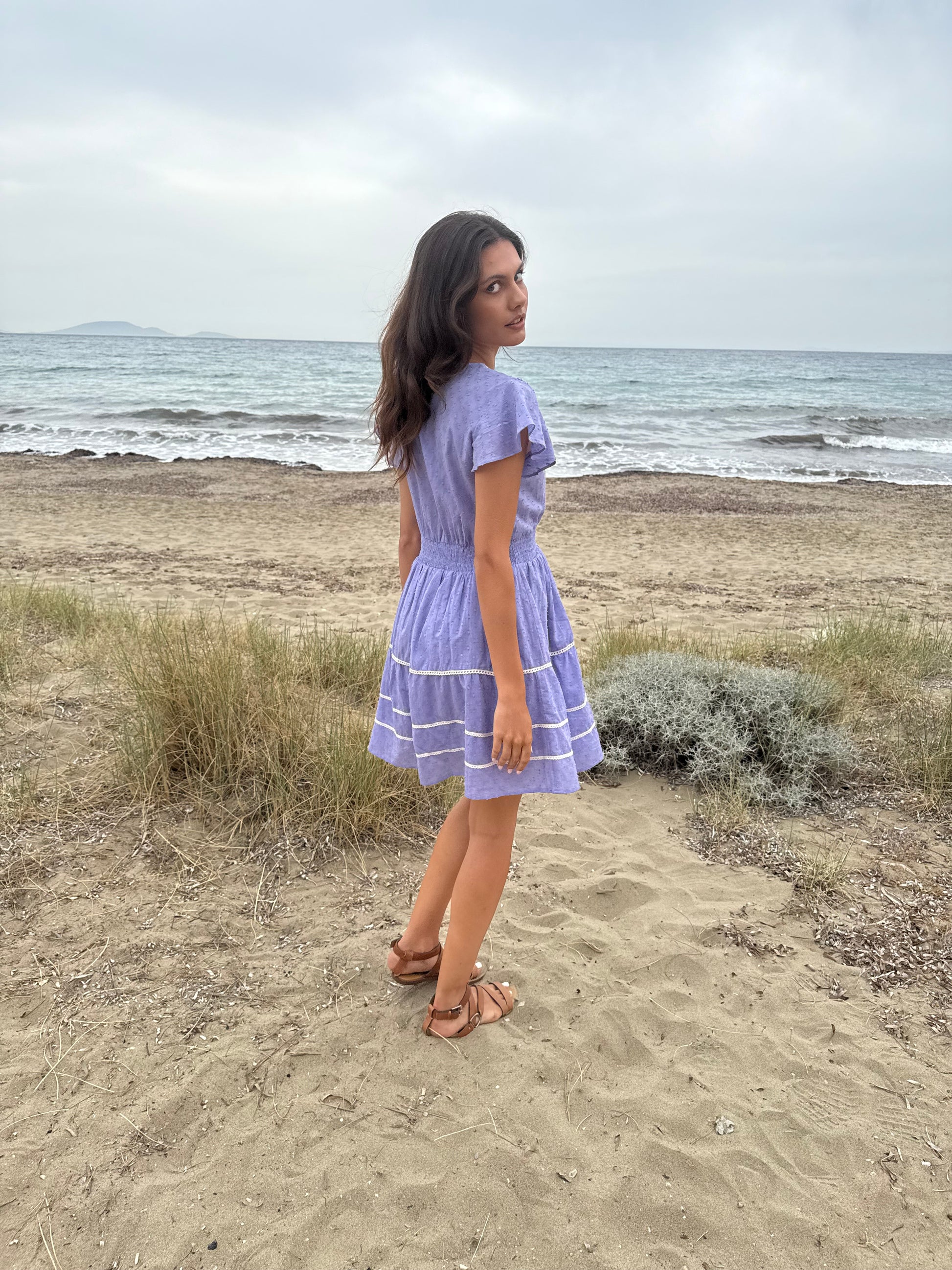 - Sleeveless mini dress in lila color for an elegant and refined look