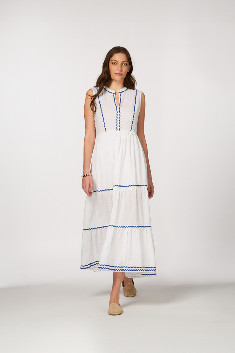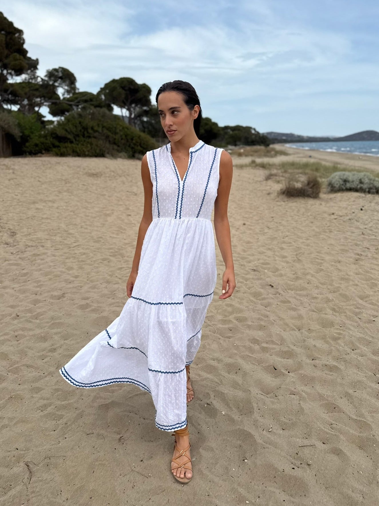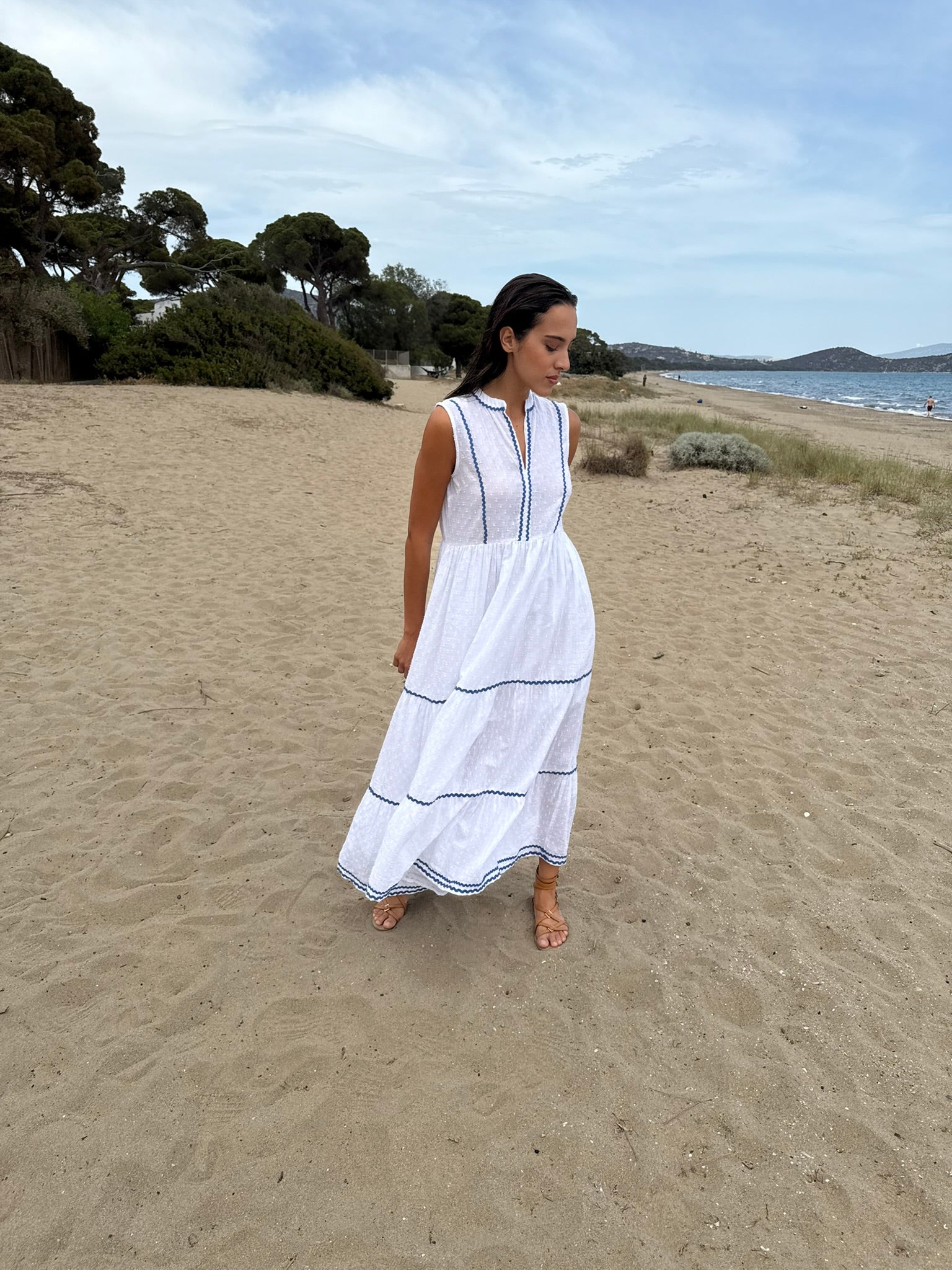 - Sleeveless maxi dress in a classic white color for a fresh, elegant look