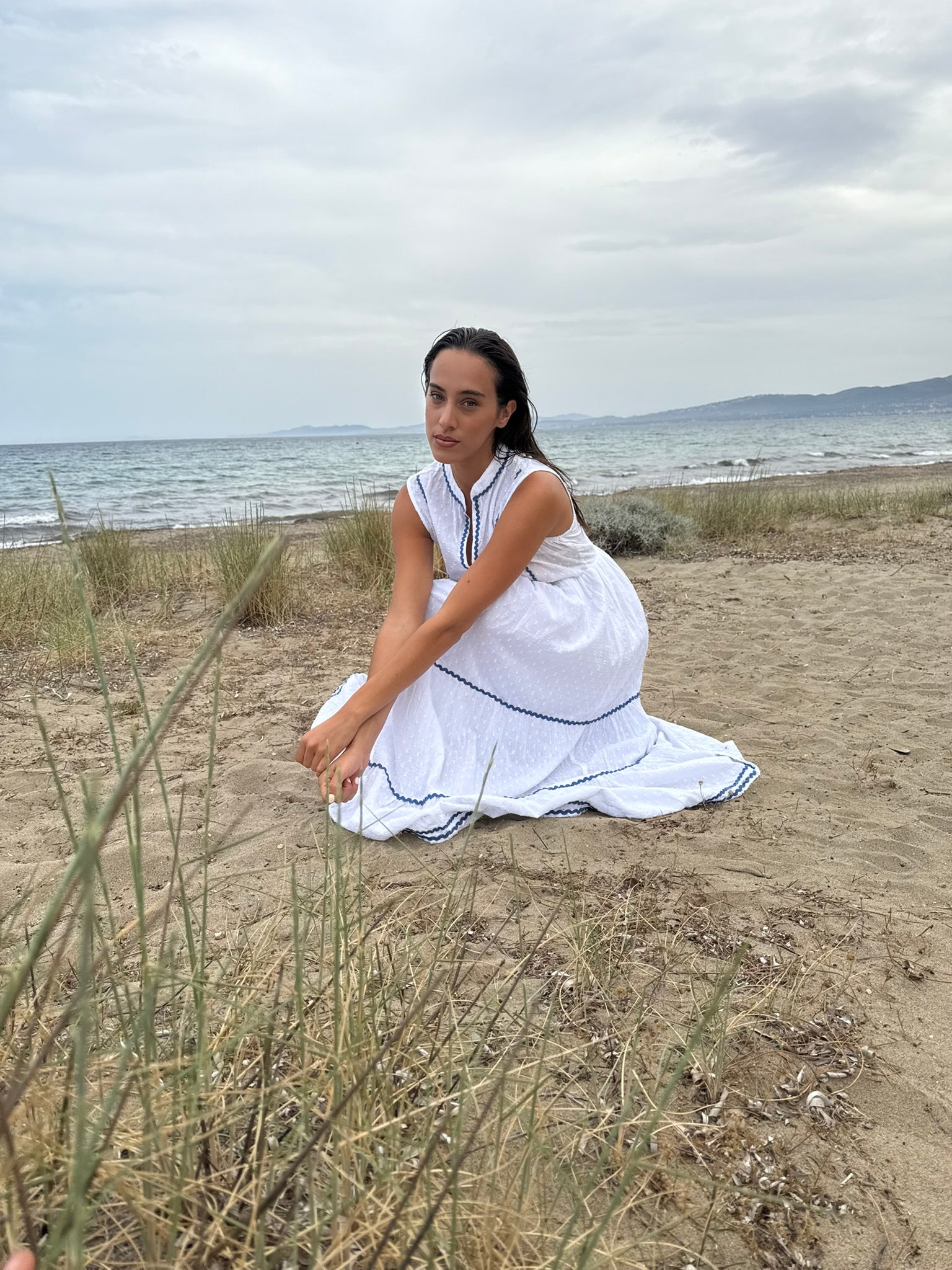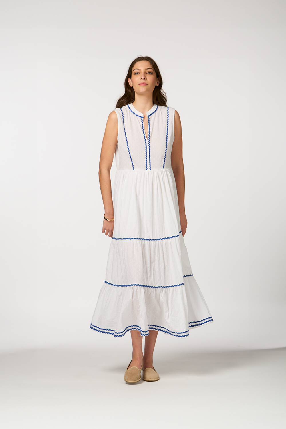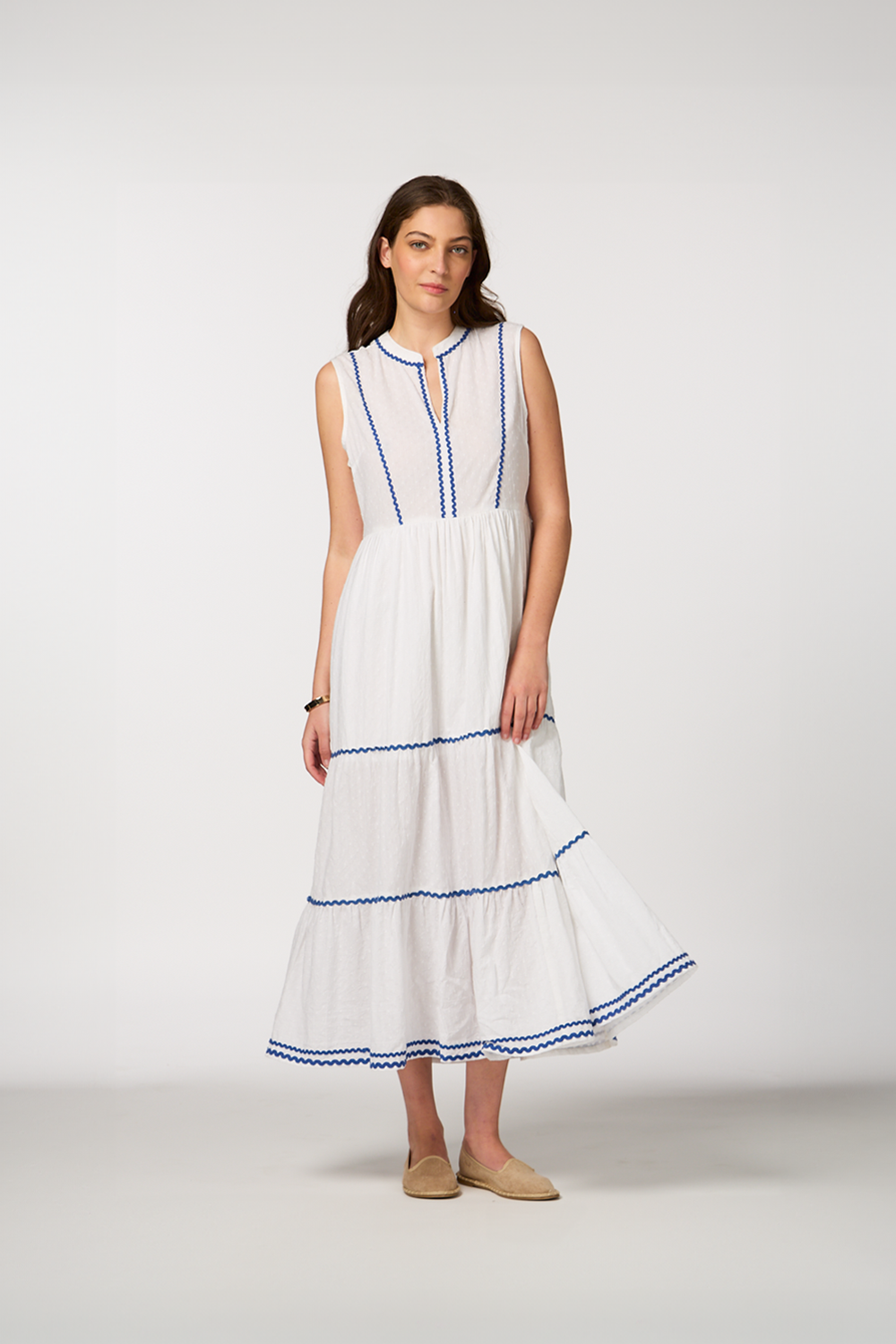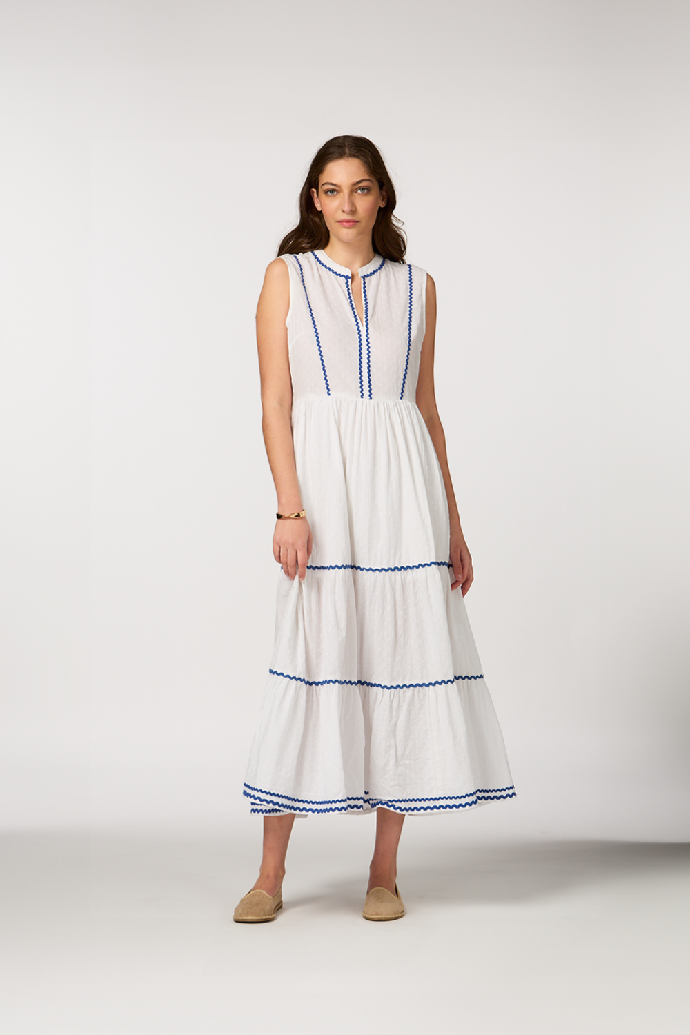 - Sleeveless maxi dress in a classic white color for a fresh, elegant look
