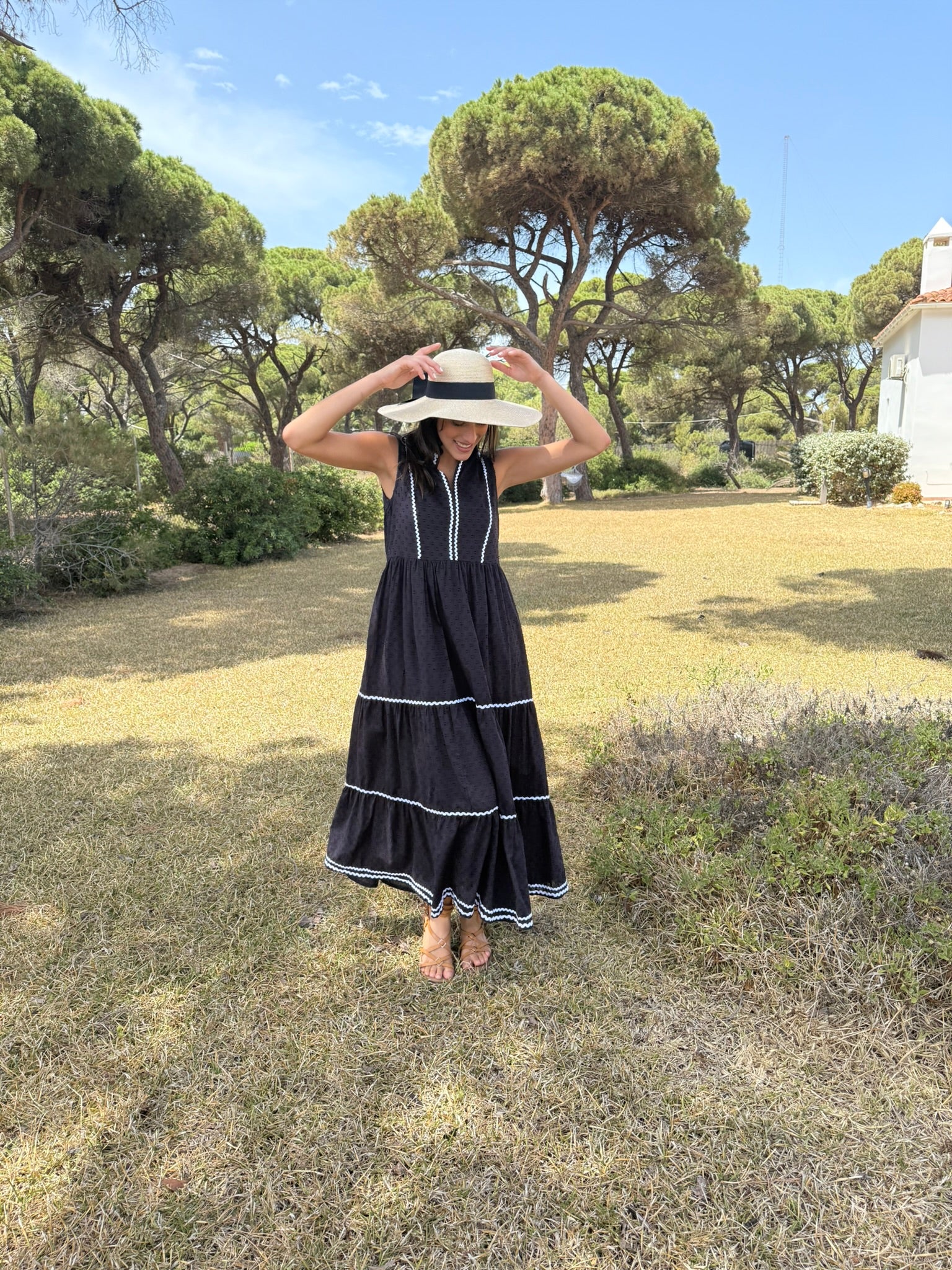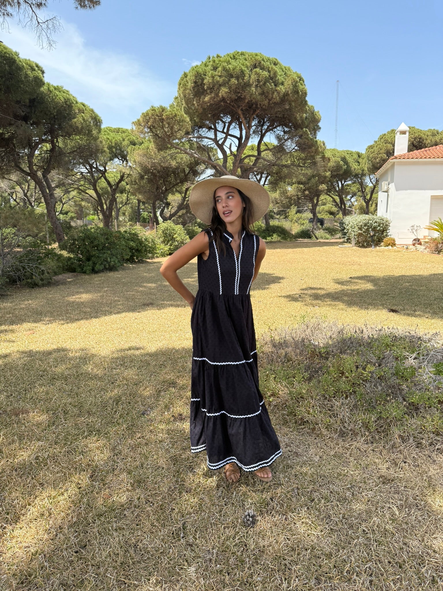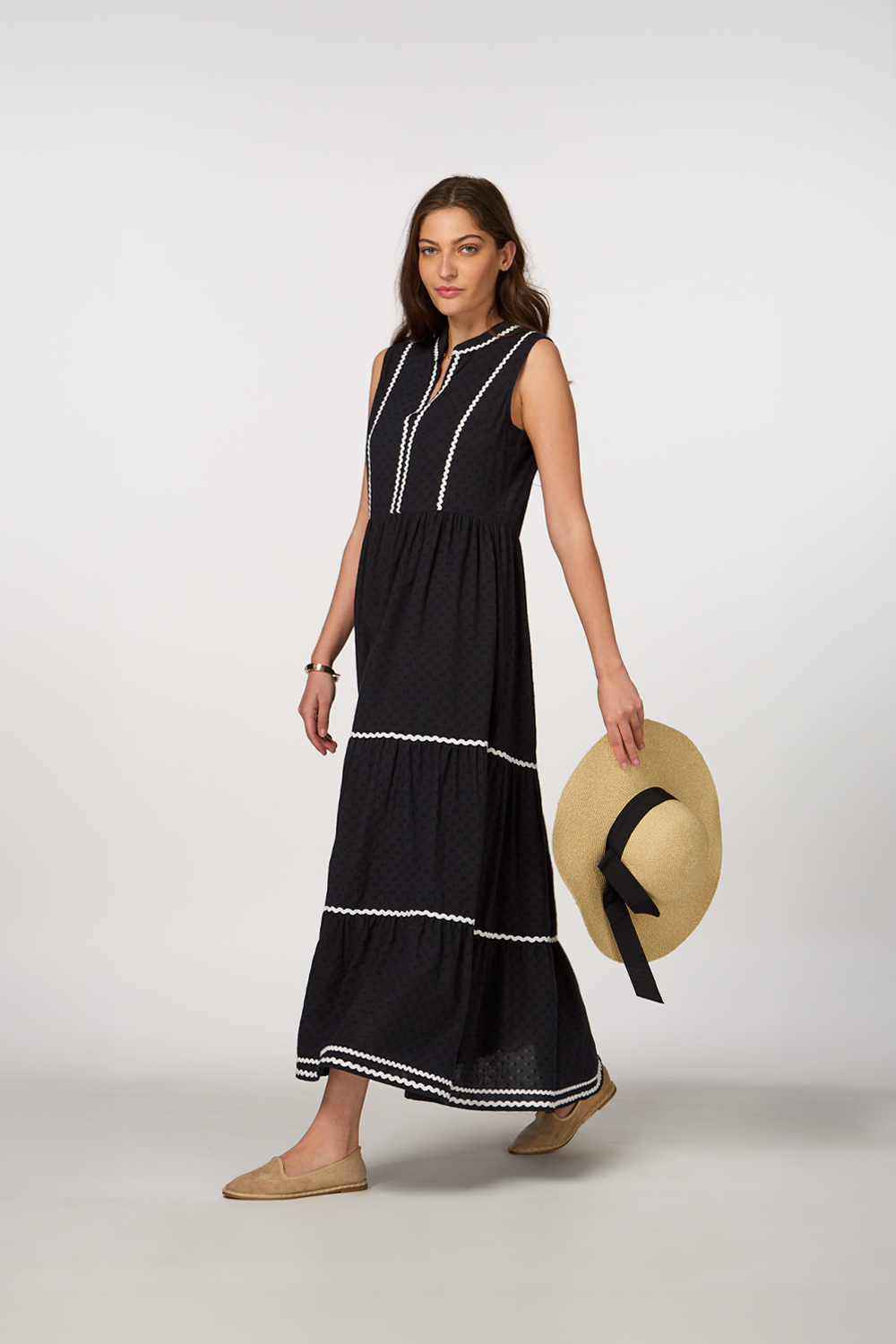 - Sleeveless maxi dress in black color for an elegant and refined look