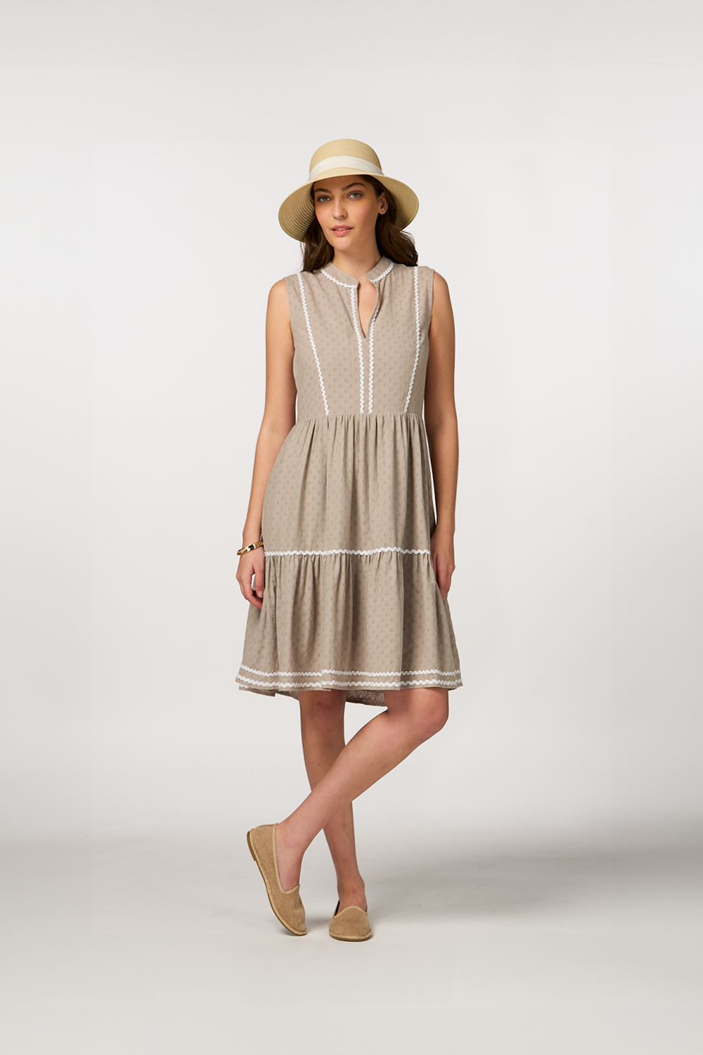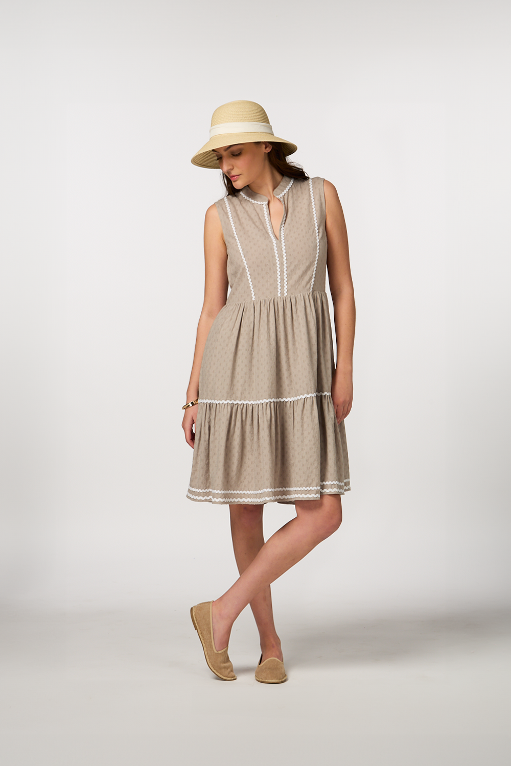 - Sleeveless mini dress in a stunning beite color for an elegant and refined look