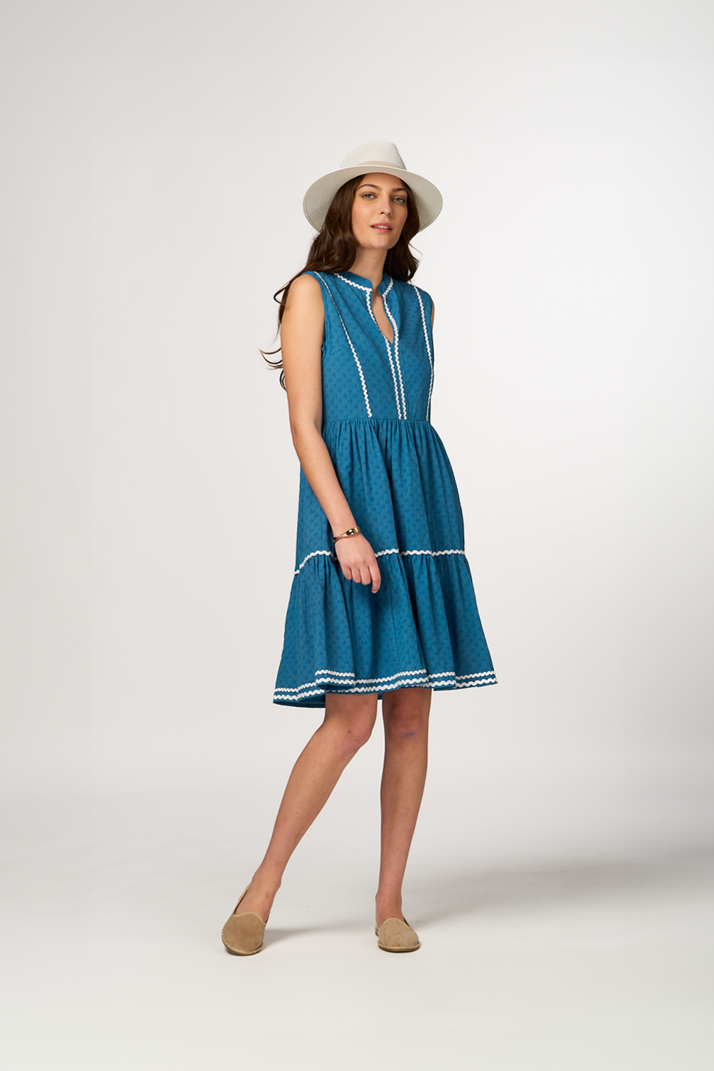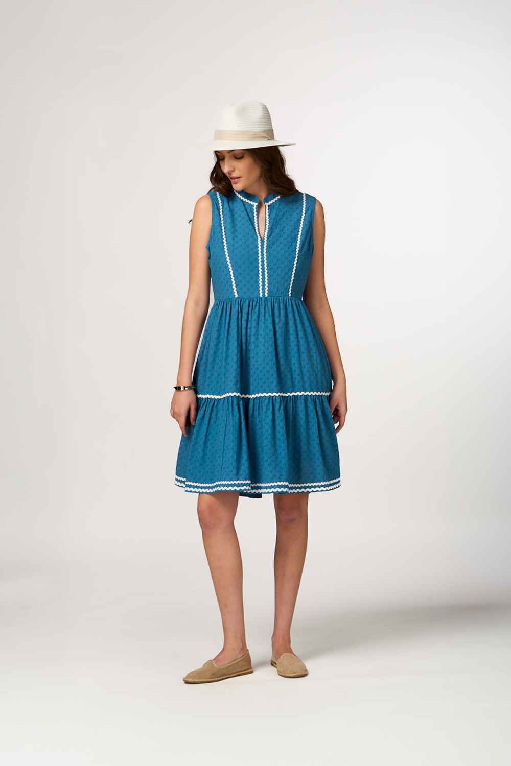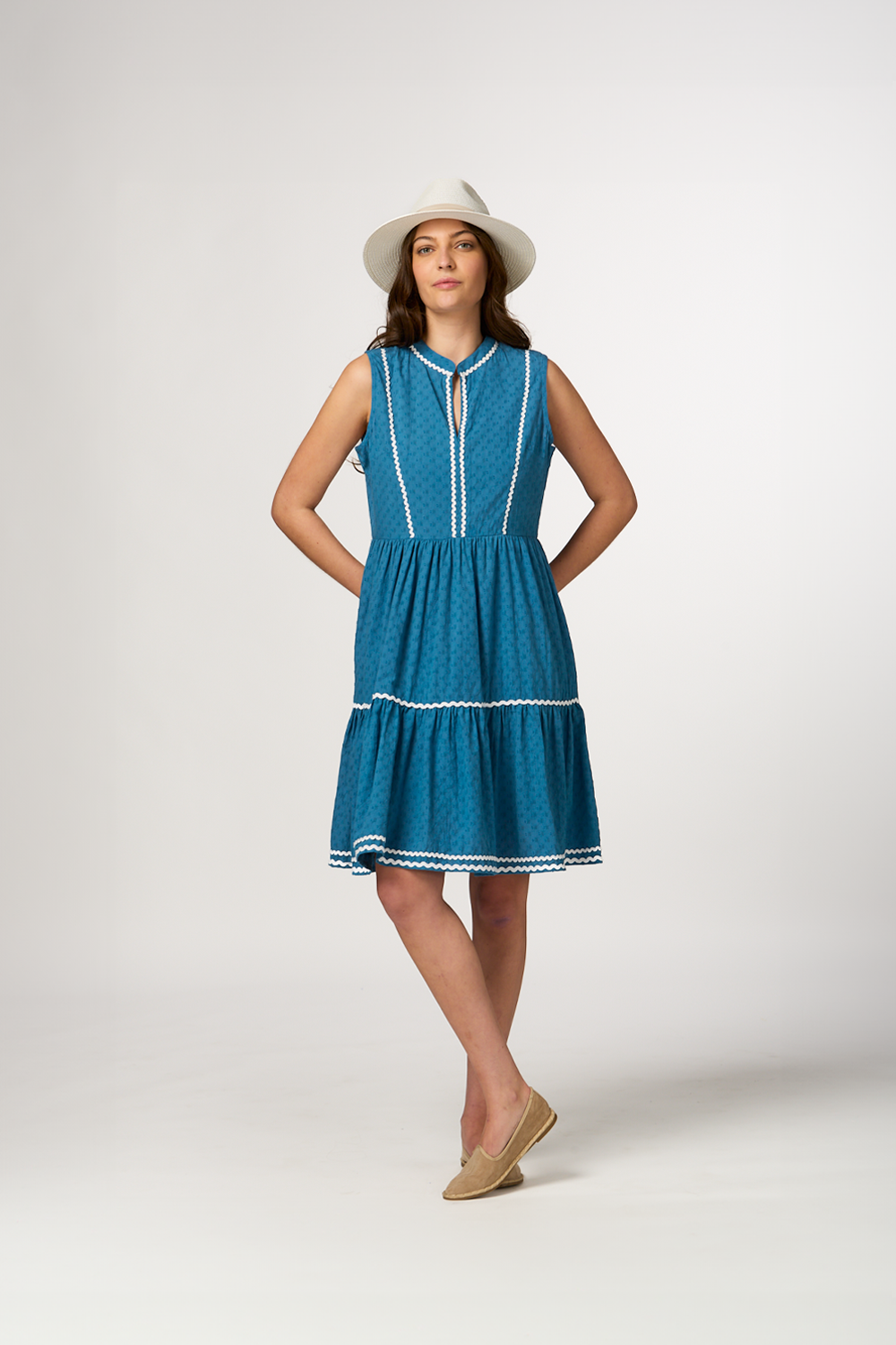 - Sleeveless mini dress in a vibrant blue color for a stylish look