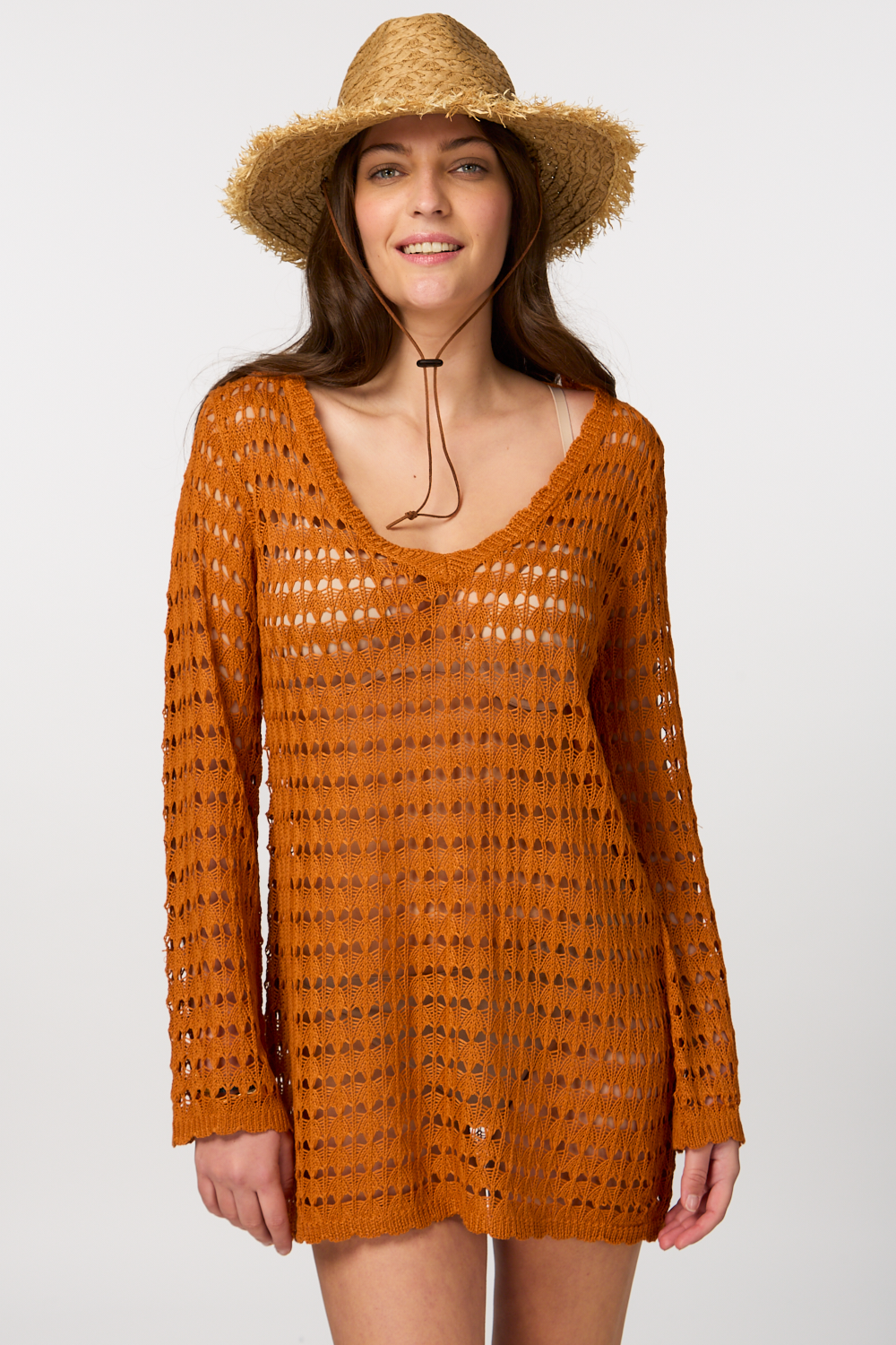 - Mini knitted resortwear with long sleeves, exuding a chic and stylish vibe.