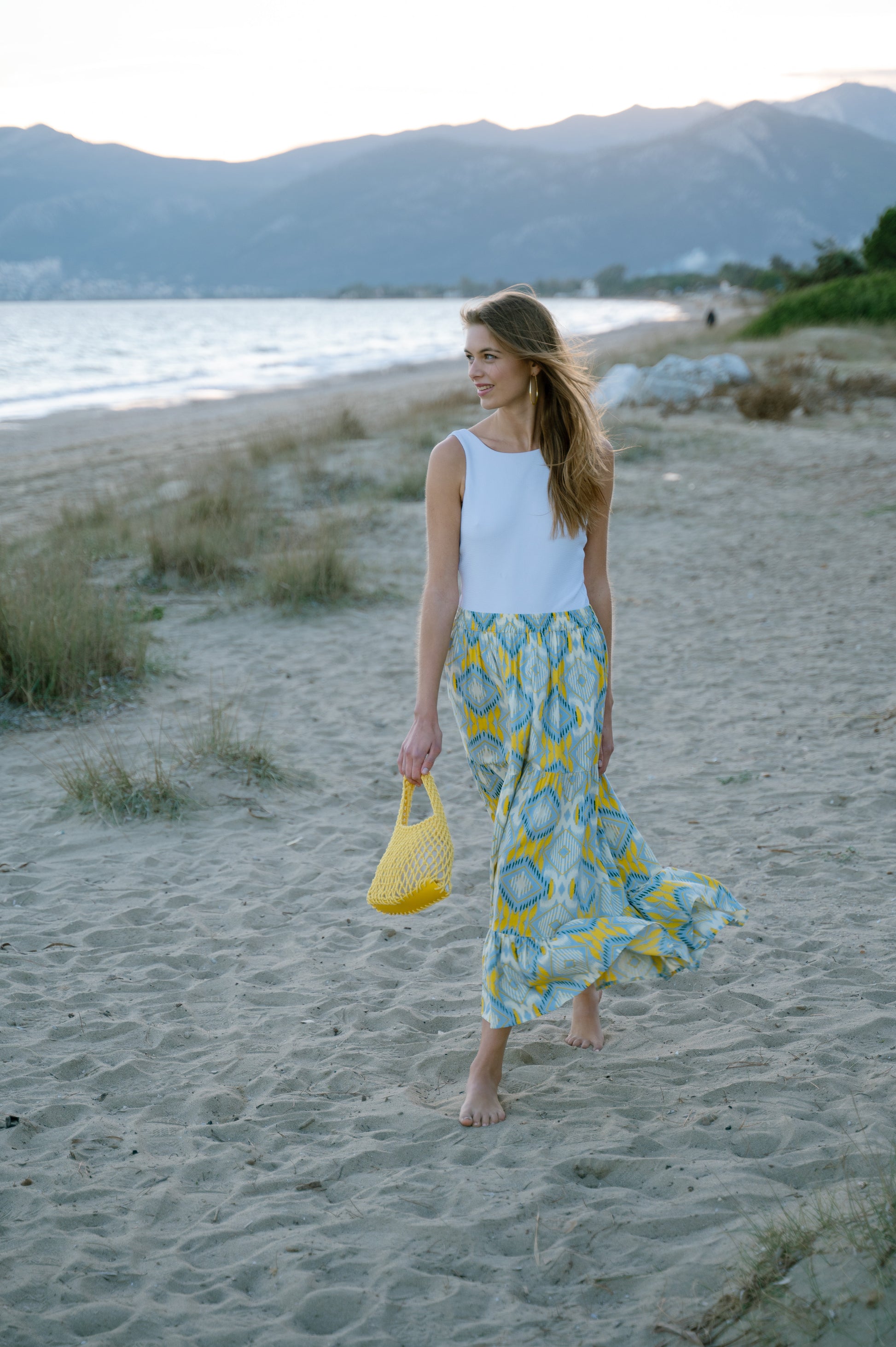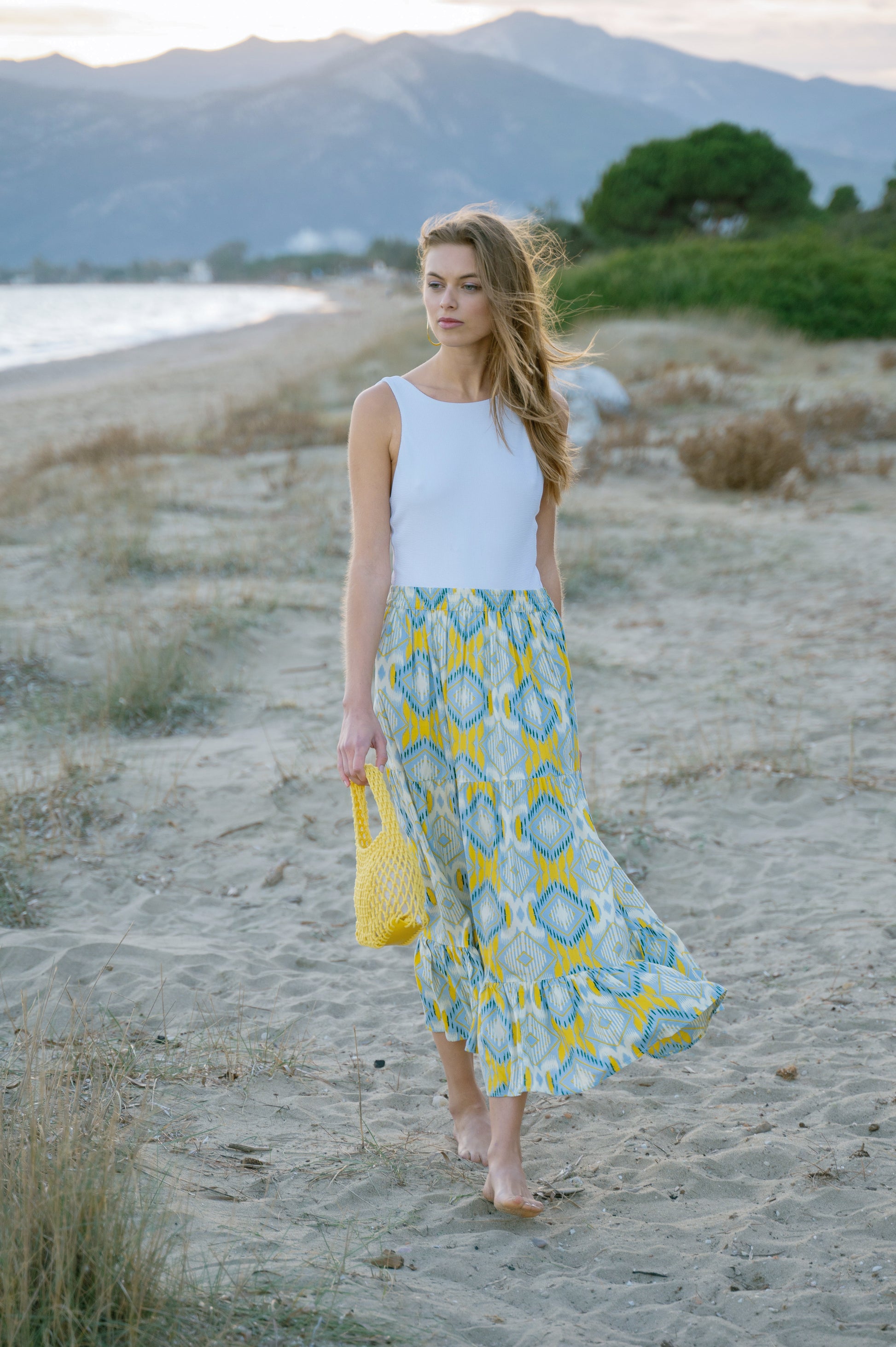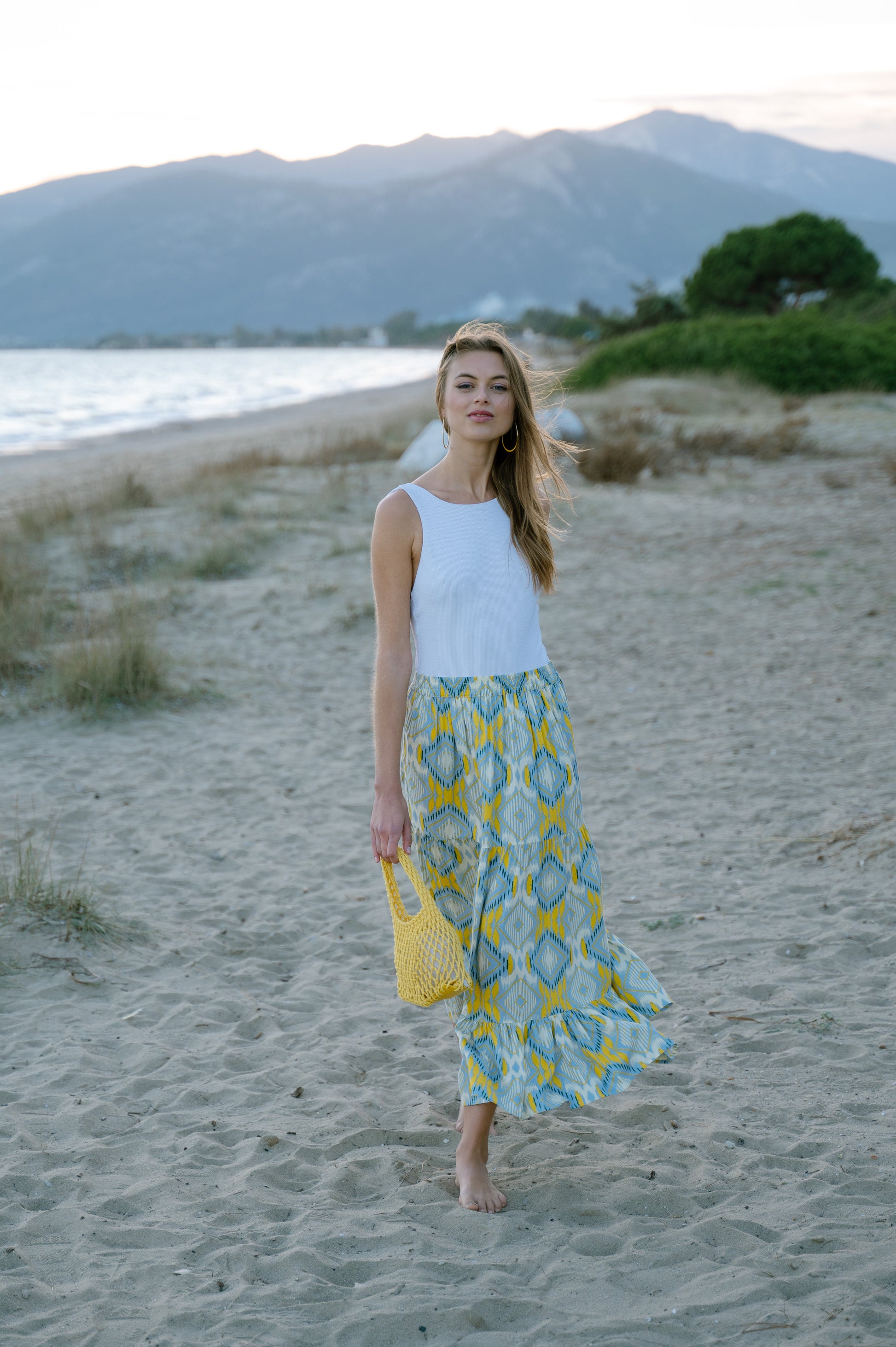 Δροσερή, αέρινη και εντυπωσιακή φούστα με βολάν στο τελείωμα και λάστιχο στη μέση για ακόμα πιο άνετη εφαρμογή. Με το κατάλληλο τοπ και αξεσουάρ μπορεί να φορεθεί από το πρωί έως το βράδυ.
