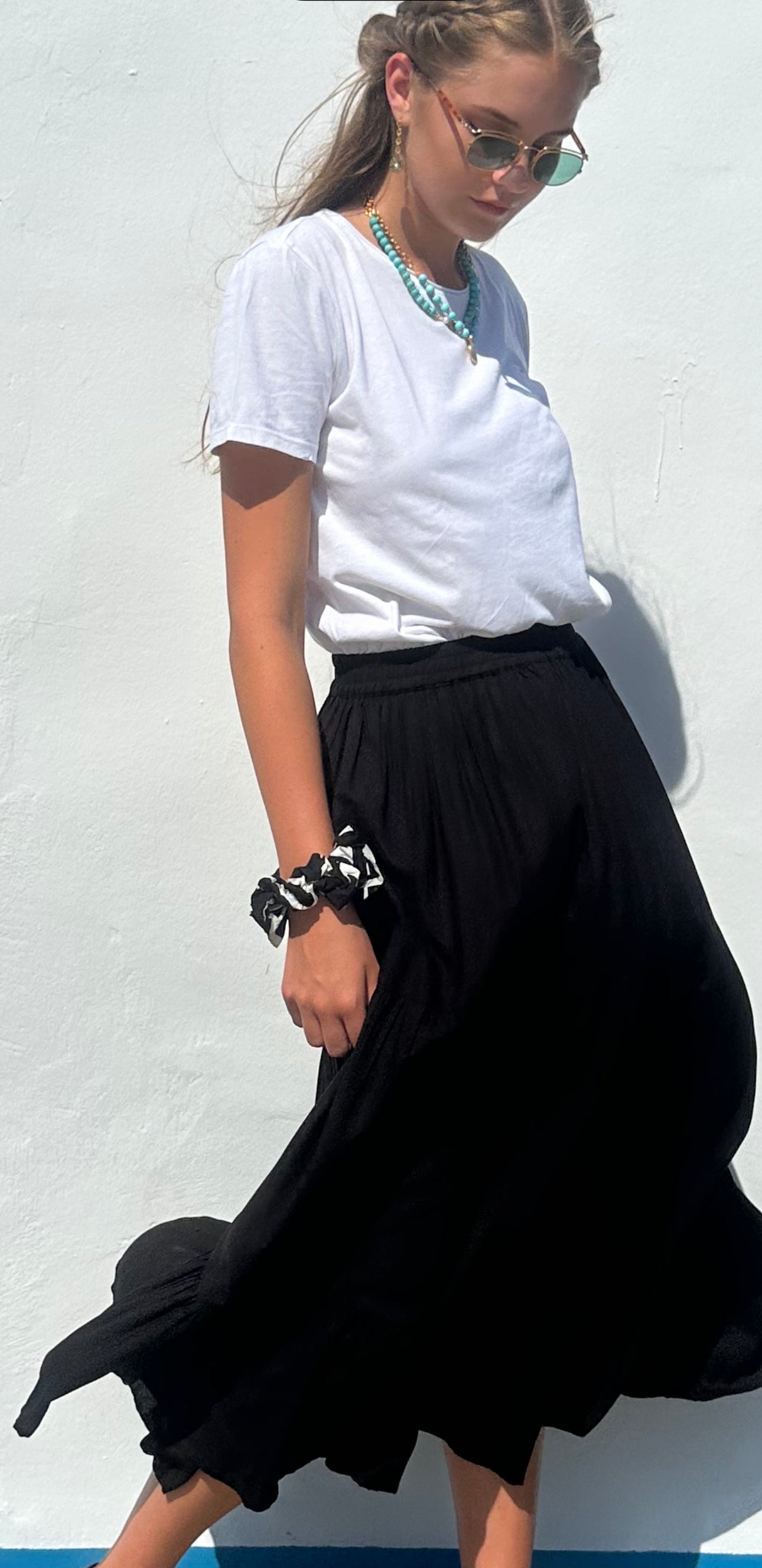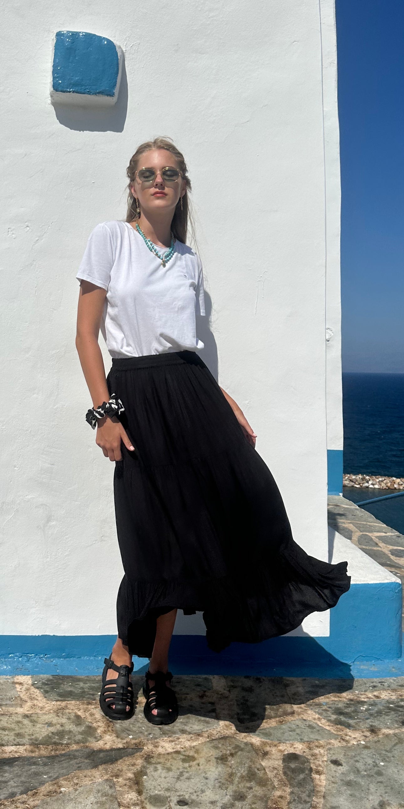 Δροσερή, αέρινη και εντυπωσιακή φούστα με βολάν στο τελείωμα και λάστιχο στη μέση για ακόμα πιο άνετη εφαρμογή. Με το κατάλληλο τοπ και αξεσουάρ μπορεί να φορεθεί από το πρωί έως το βράδυ.