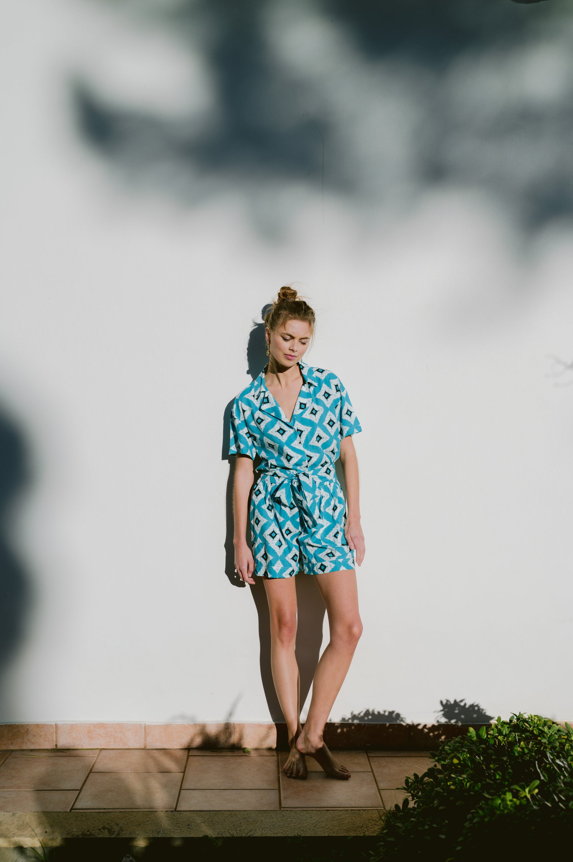 - Stunning Set with Geometric Print Shorts and Short-Sleeve Shirt