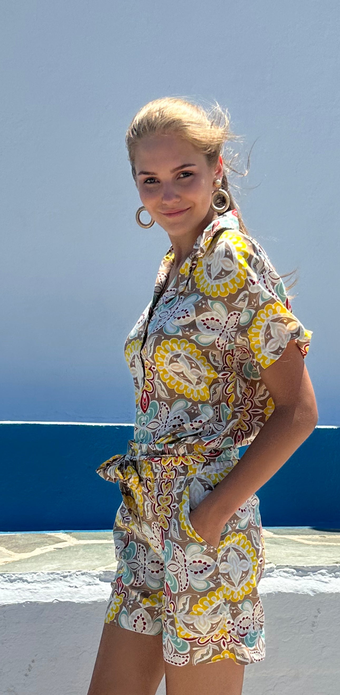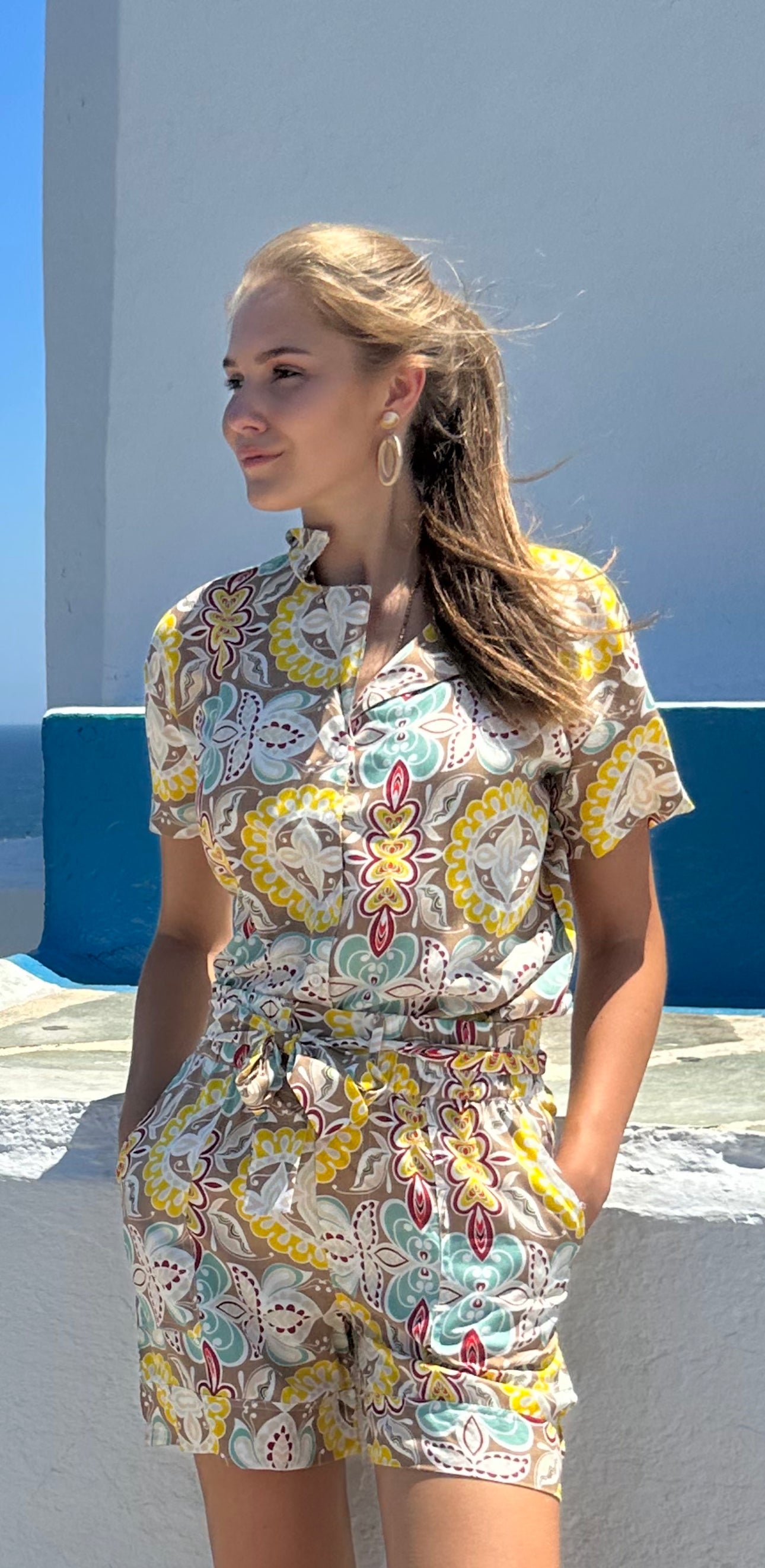 - Stunning Set with Geometric Print Shorts and Short-Sleeve Shirt