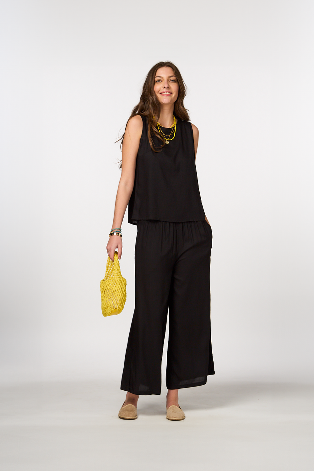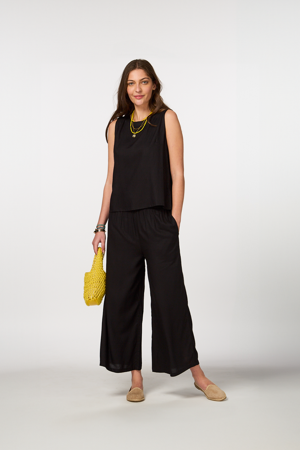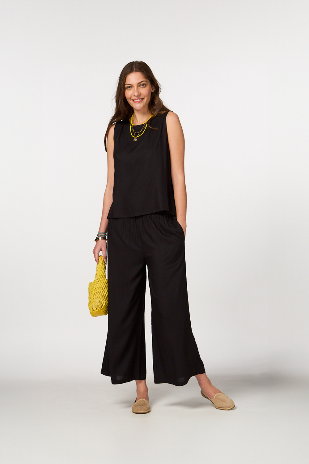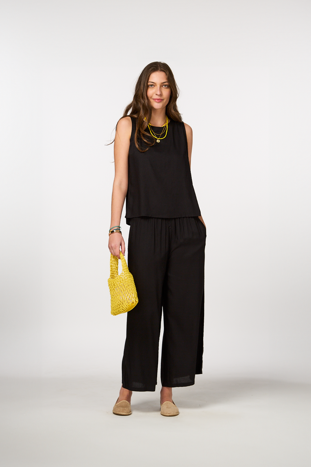 - Includes matching pants and a sleeveless top for an effortlessly stylish look