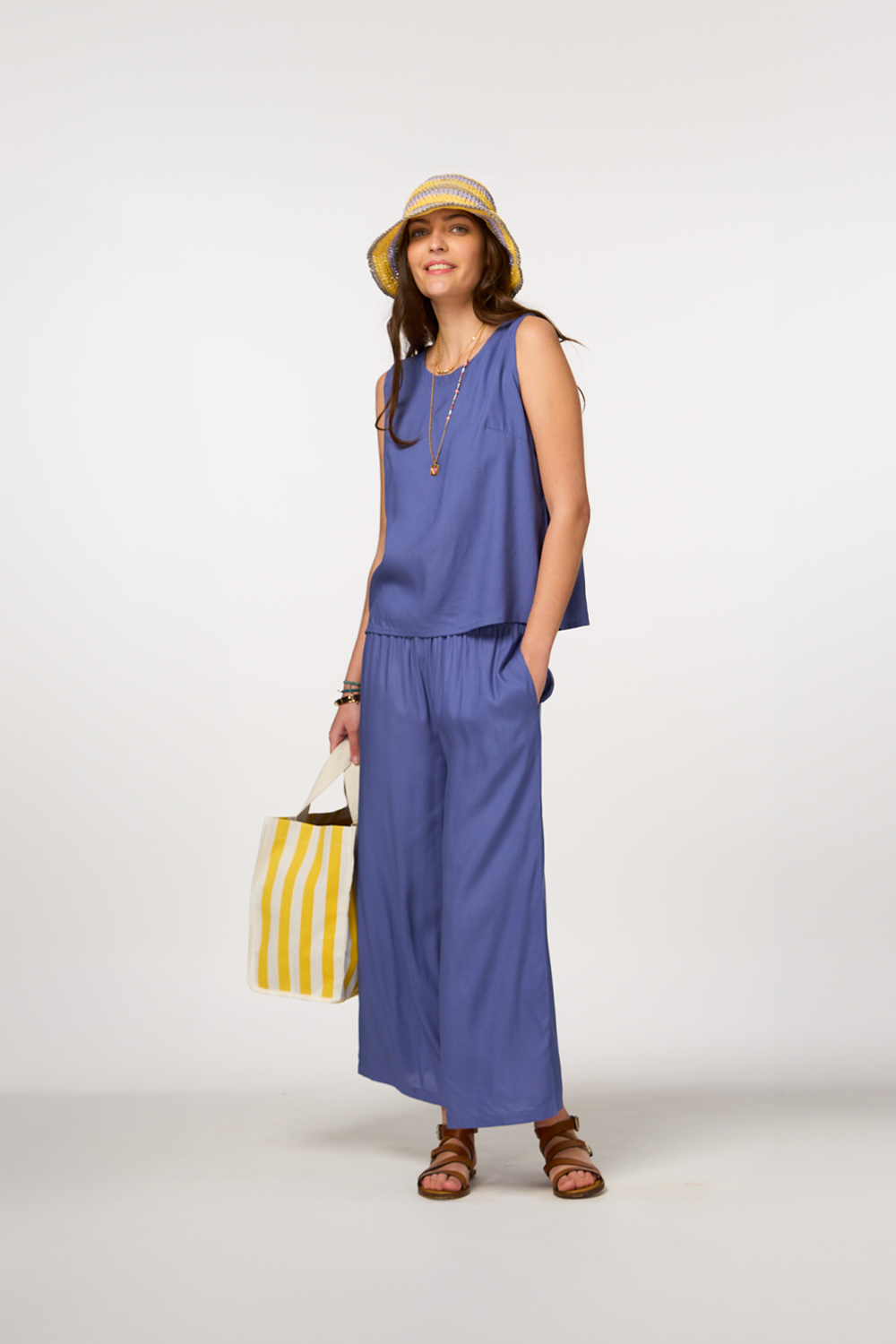 - Includes matching pants and a sleeveless top for an effortlessly stylish look