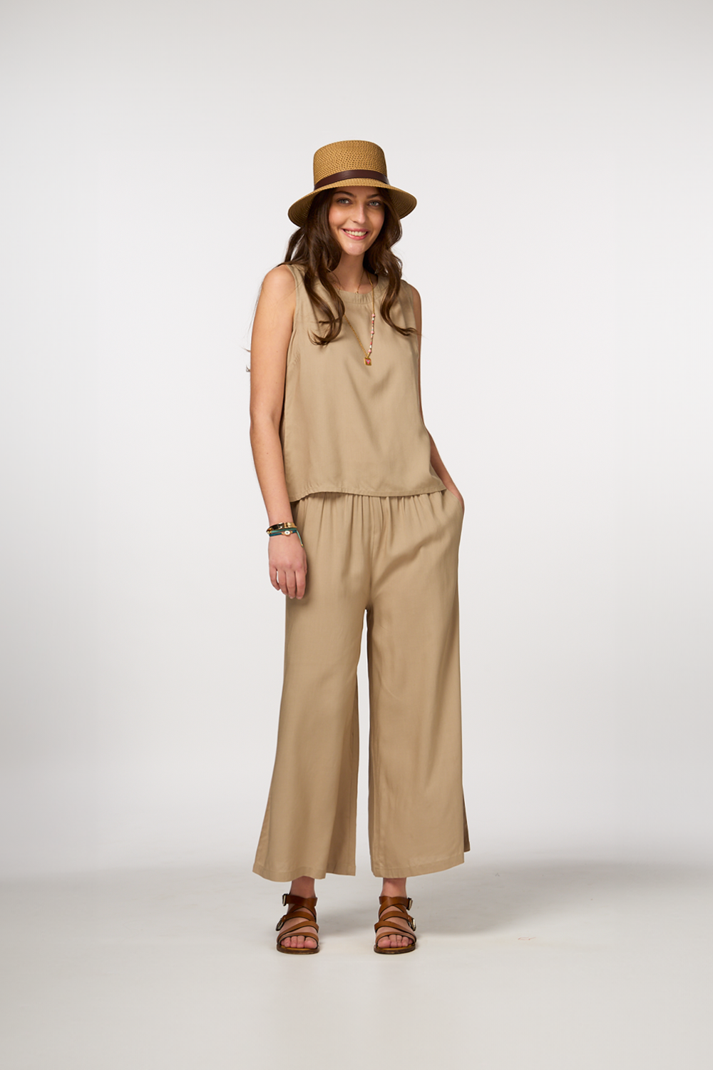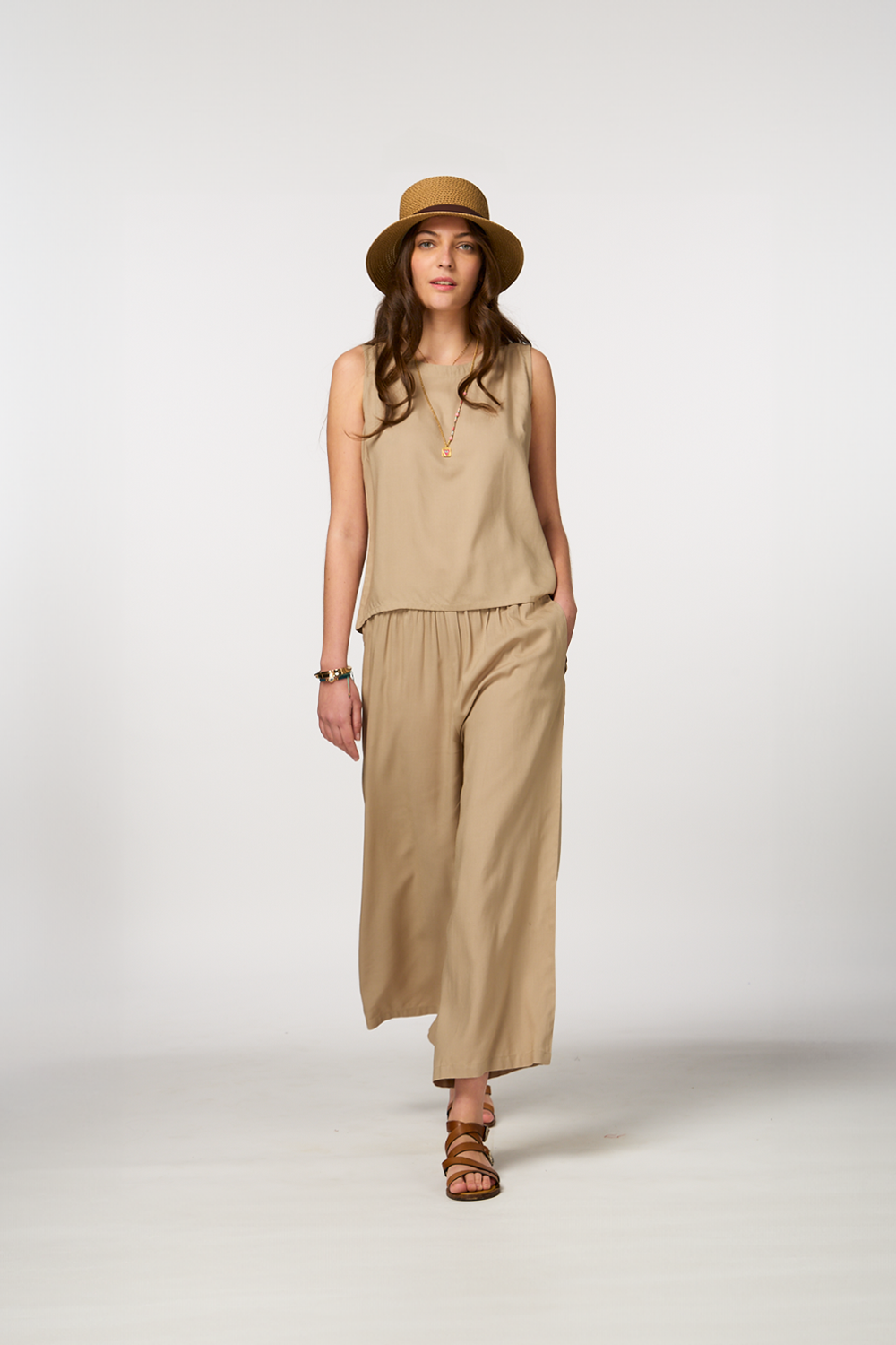 - Includes matching pants and a sleeveless top for an effortlessly stylish look