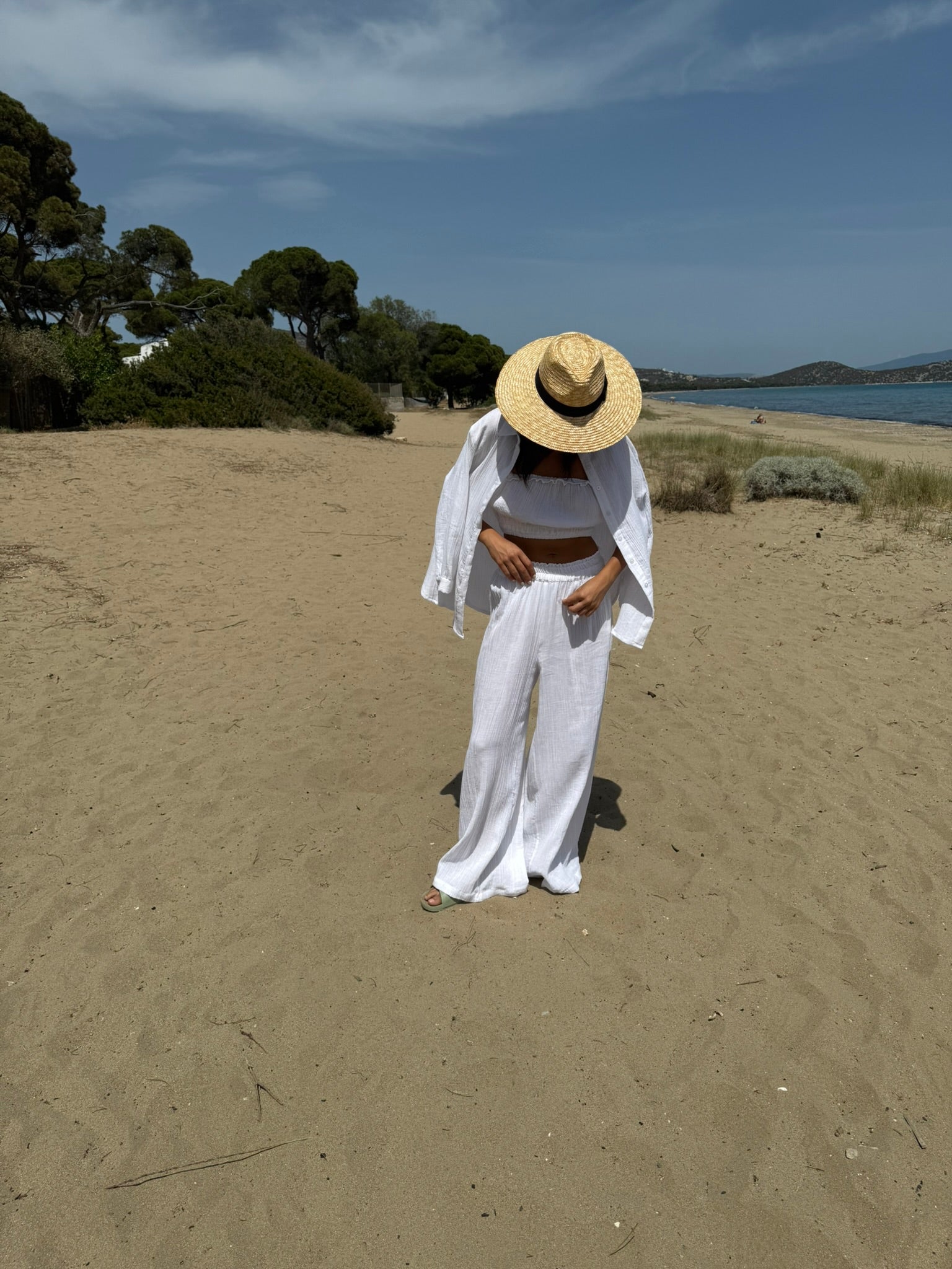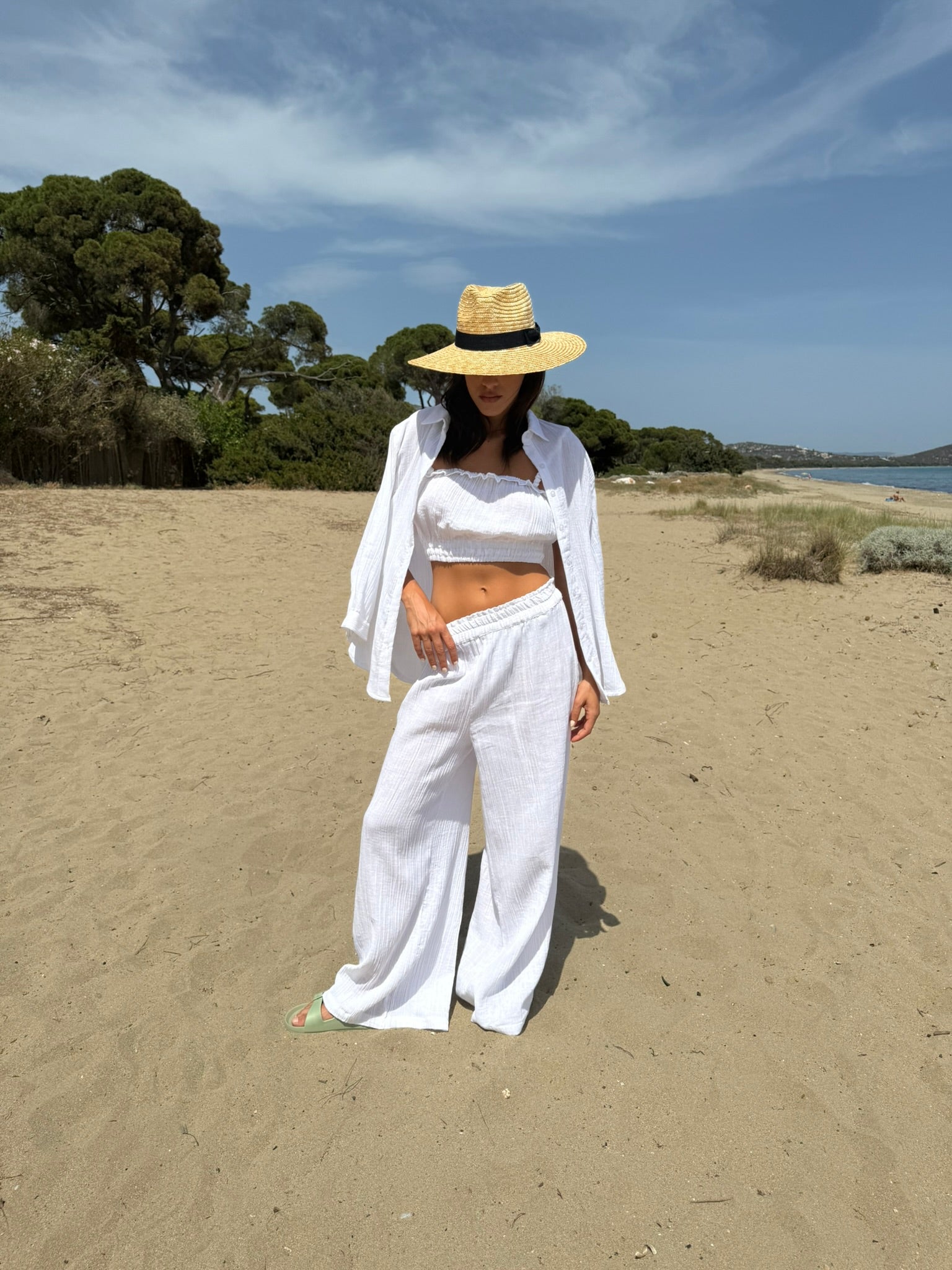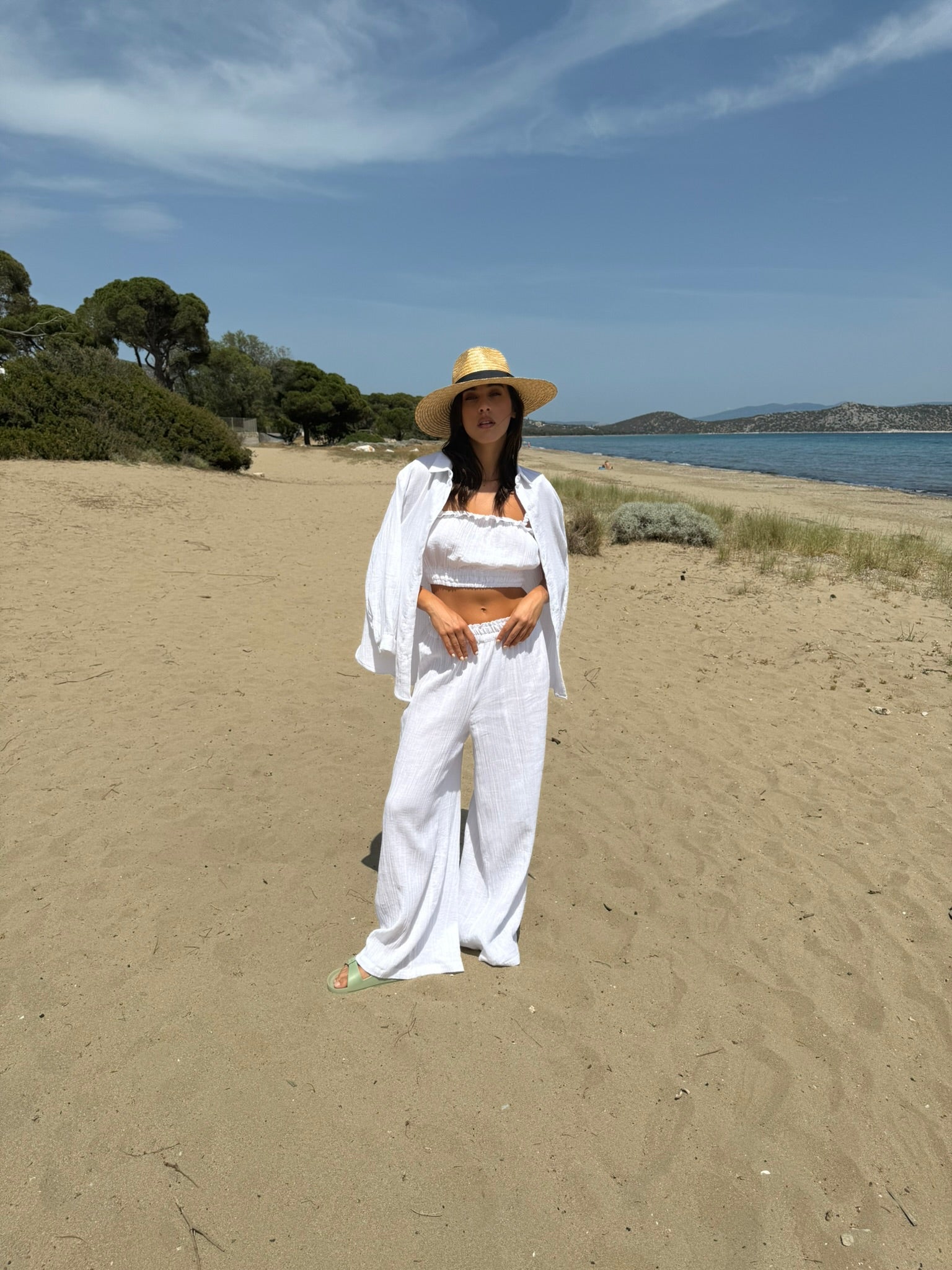 - Includes a pair of matching pants, shirt, and crop top for effortless coordination
