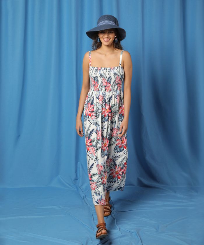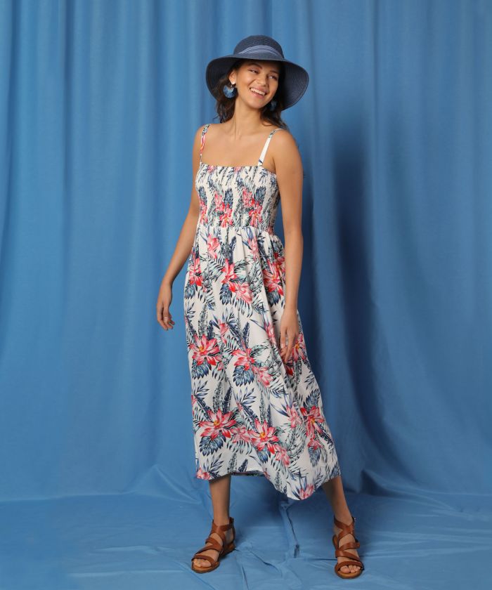 - Maxi printed dress with straps and a honeycomb pattern in a comfortable fit