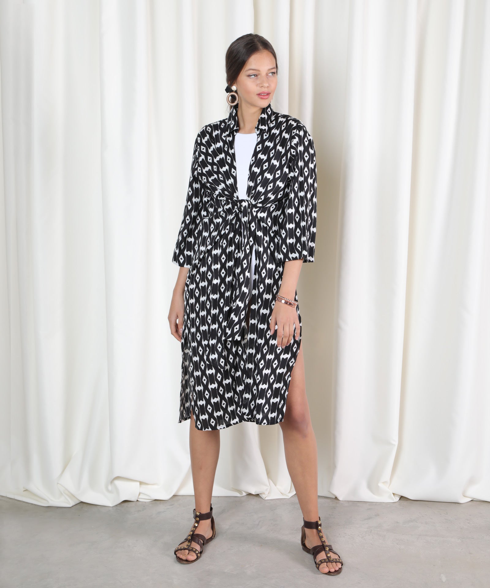 - Maxi shirt dress with collar and wide trois-quart sleeves