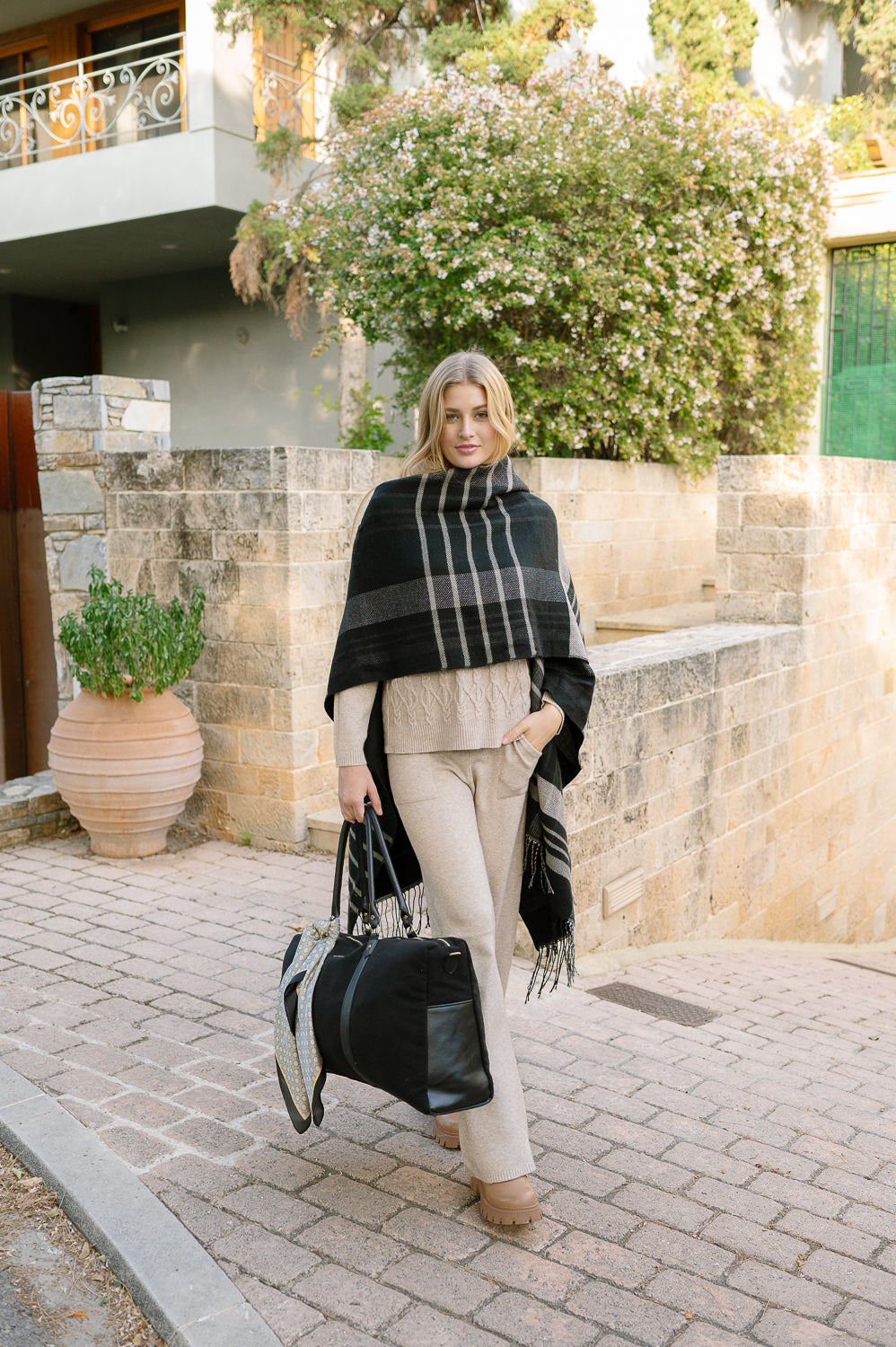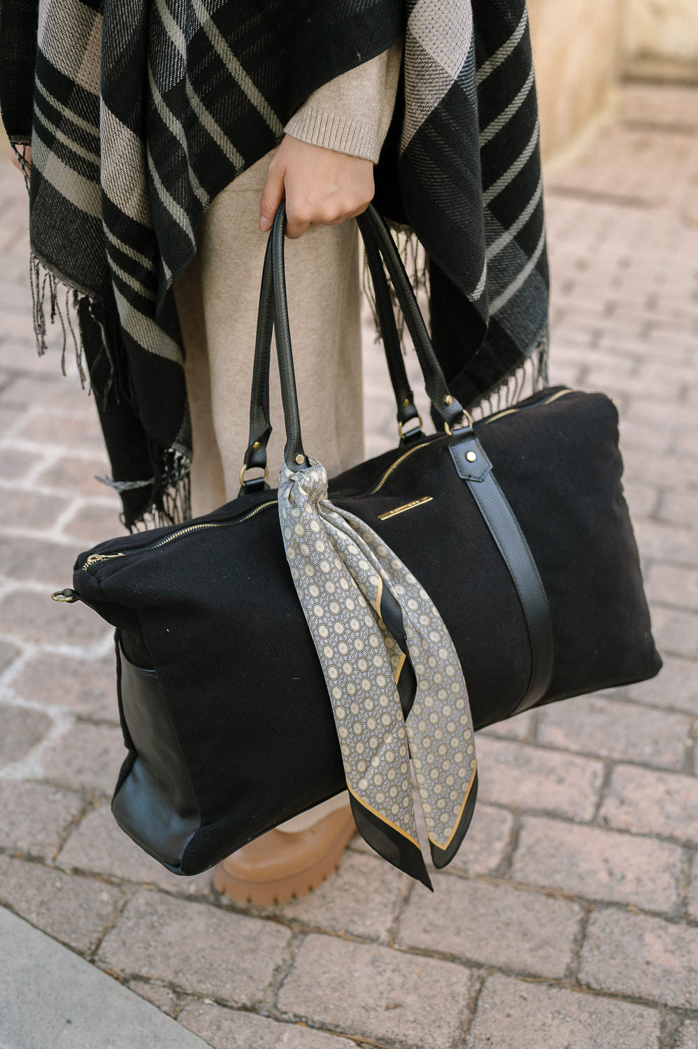 Τσάντα σε σχέδιο weekender από ύφασμα με βελουτέ όψη και δερμάτινη λεπτομέρεια. Εσωτερική τσέπη. Κλείσιμο με φερμουάρ.